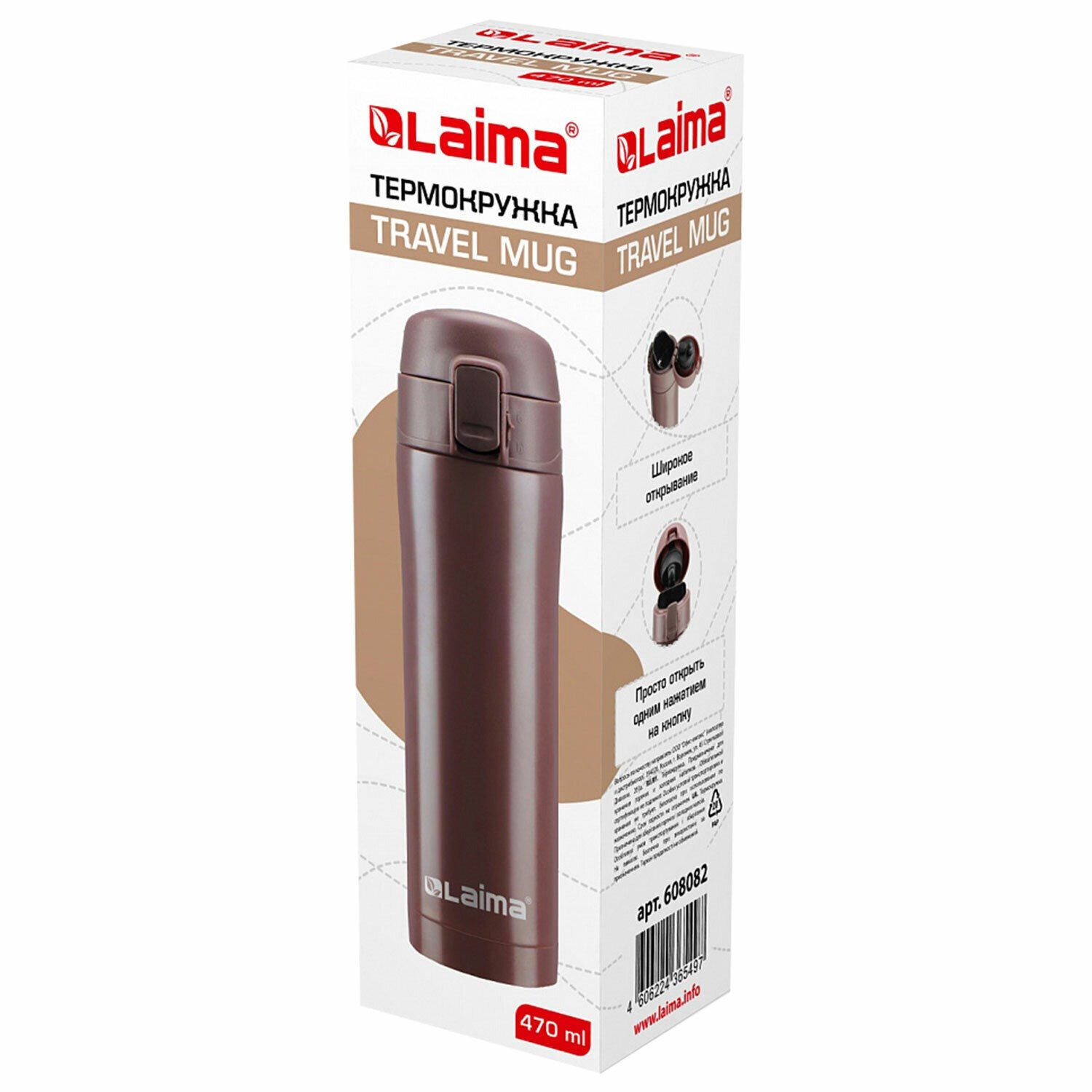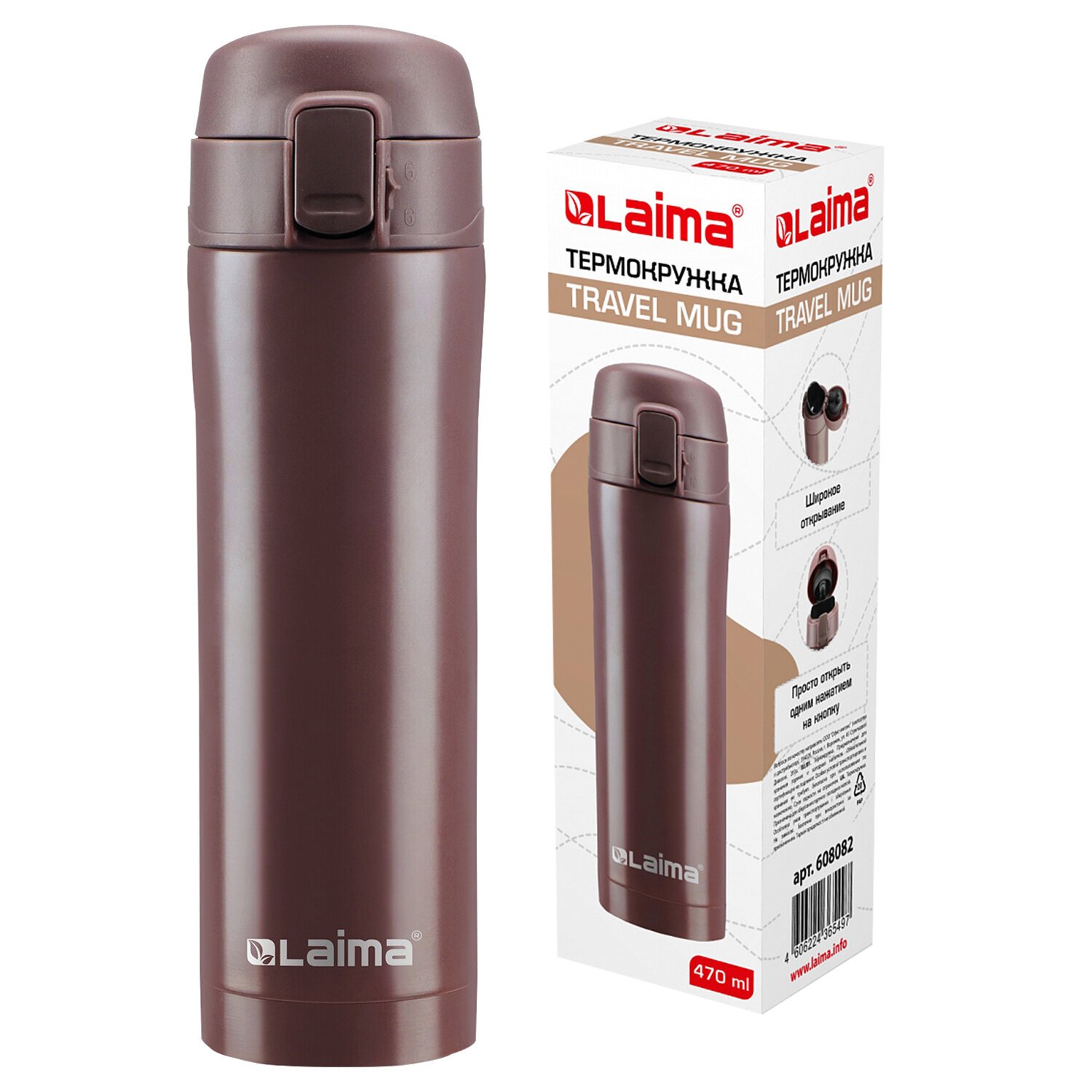 Термокружка LAIMA с двойной стальной стенкой изготовлена из нержавеющей стали марки 304 медицинского уровня. Сконструирована по вакуумной технологии.