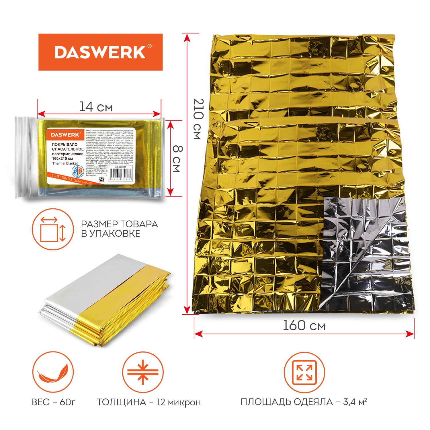 Термоодеяло/покрывало изотермическое серебро/золото спасательное 160х210 см, DASWERK, 630841