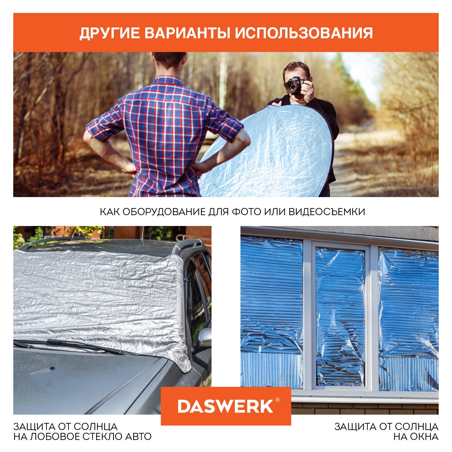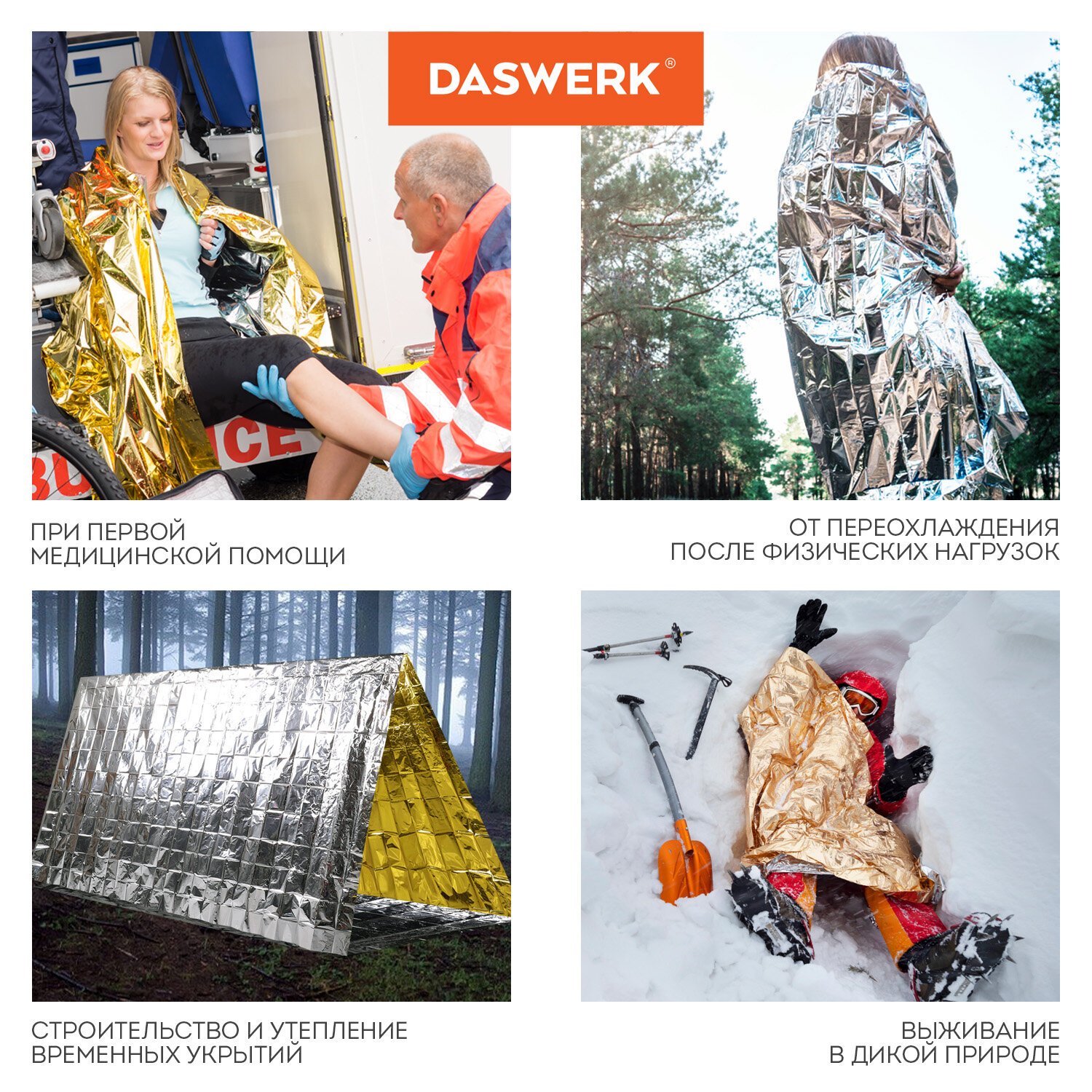 Термоодеяло/покрывало изотермическое DASWERK представляет собой полиэфирную пленку с металлическим напылением.