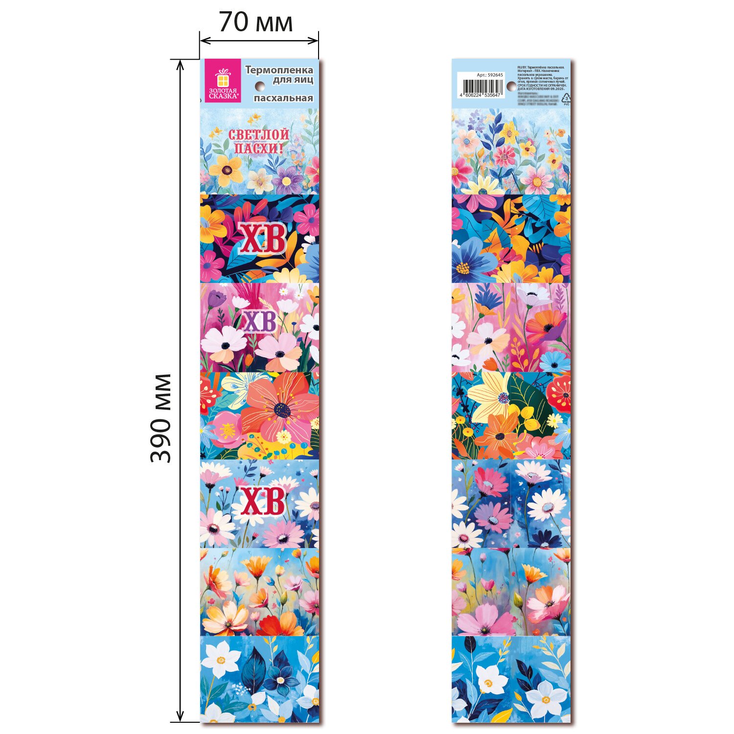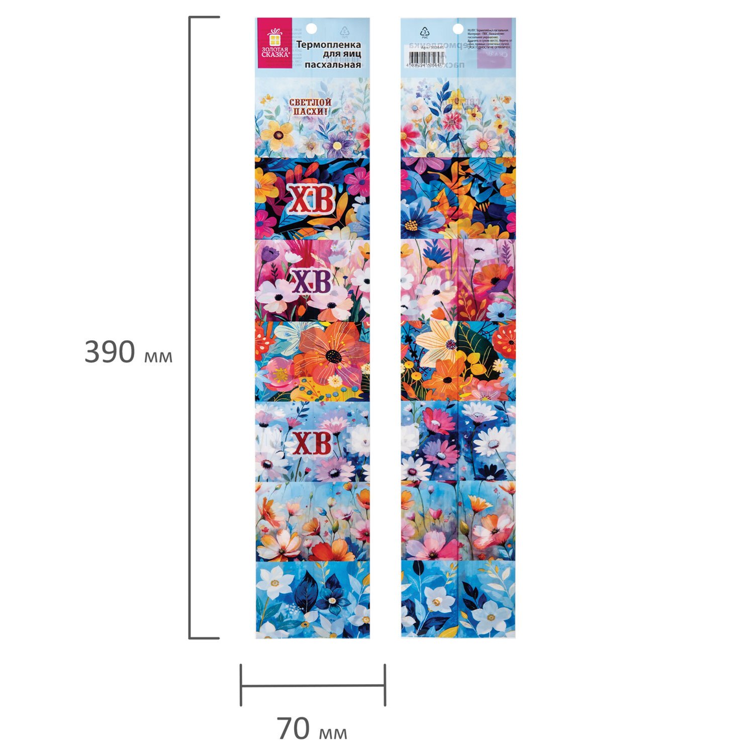 Лента из ПВХ длиной 39 см рассчитана на 7 яиц. Дизайн пленок - уникально яркий и весенний!
