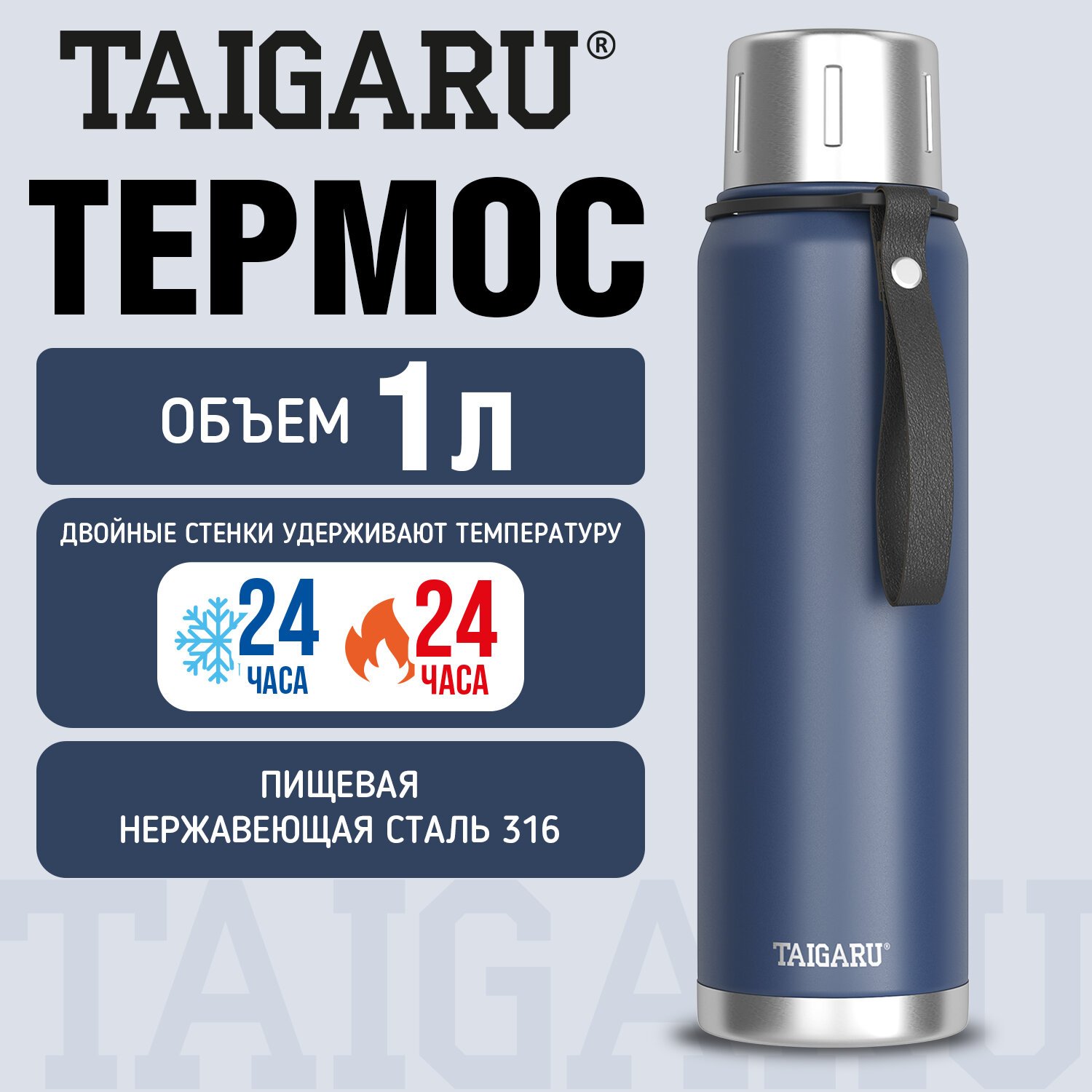 Термос 1л CHOICE, нержавеющая сталь SUS316, крышка/кружка, ремешок, синий матовый, TAIGARU (ТАЙГАРУ), 700313