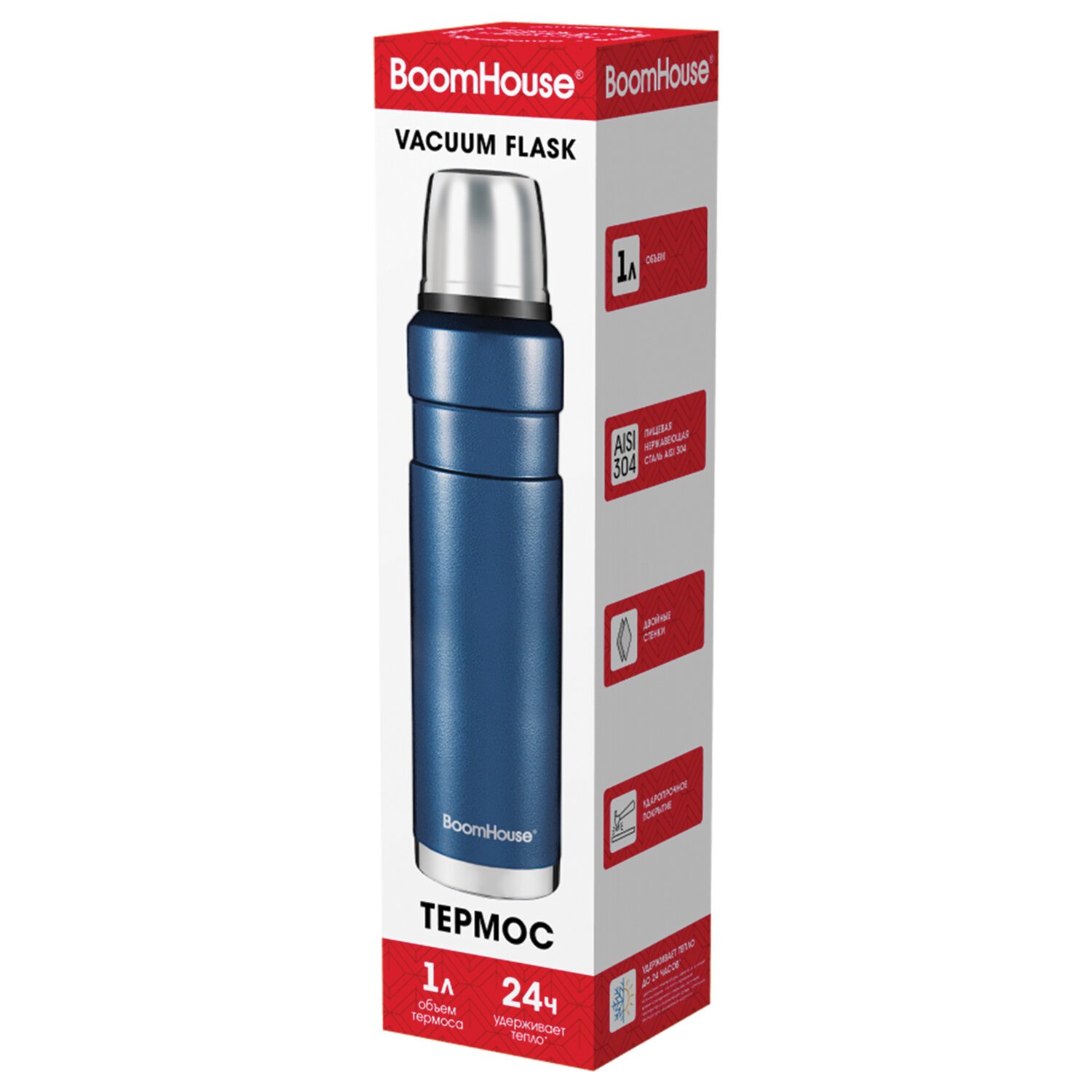 Термос 1л DARKBLUE, нержавеющая сталь SUS304, молотковая эмаль, крышка/кружка, синий, BOOMHOUSE (БумХаус), 700310