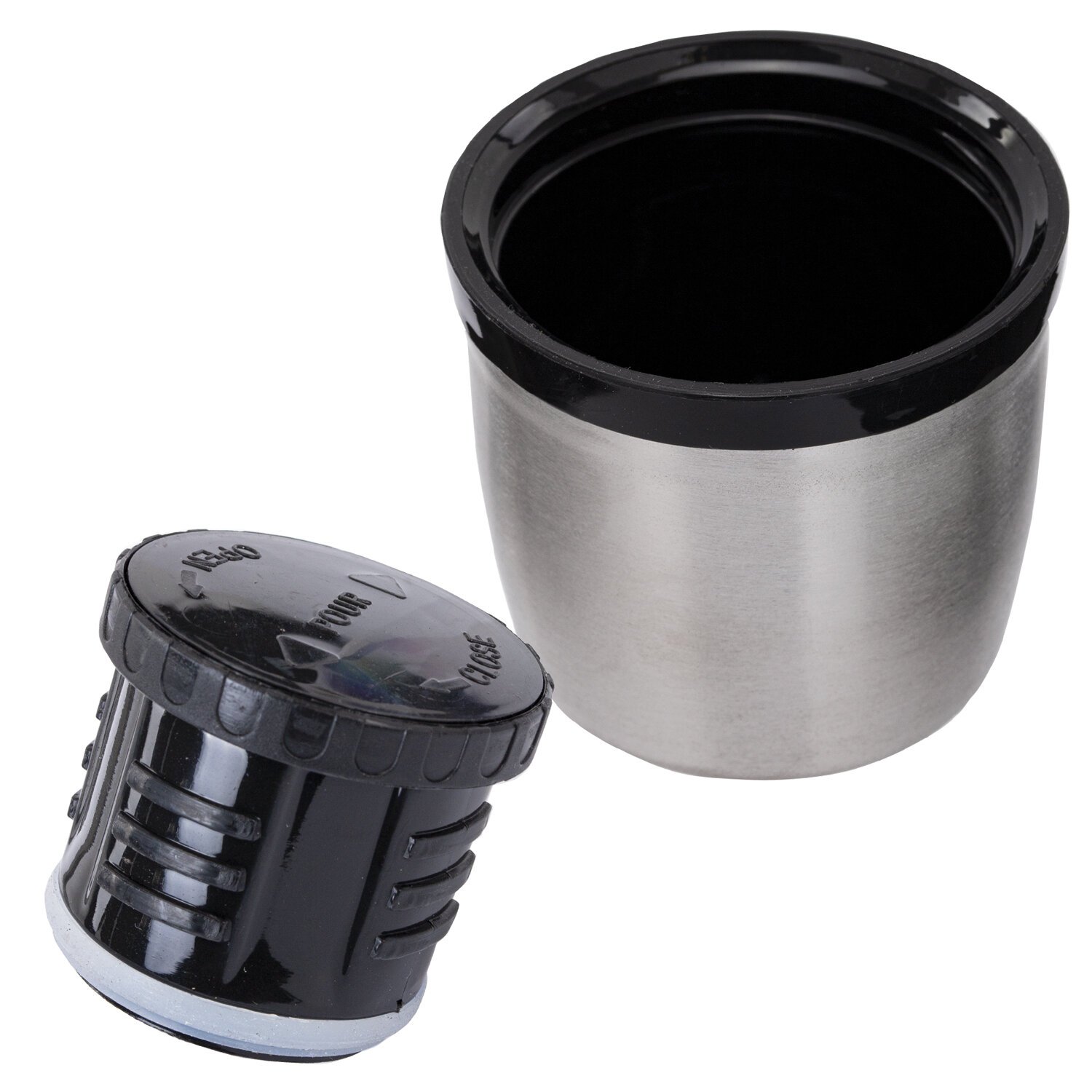 Термос оснащен специальной пробкой с каналами, позволяющей наливать напитки без полного откручивания пробки под любым углом и помогающей сохранять температуру напитка как можно дольше. Крышка термоса может быть использована как кружка. Корпус покрыт молотковым покрытием темно-синего цвета, которое не только обеспечивает термосу стильный дизайн, но и препятствует появлению мелких царапин при долгосрочном использовании.