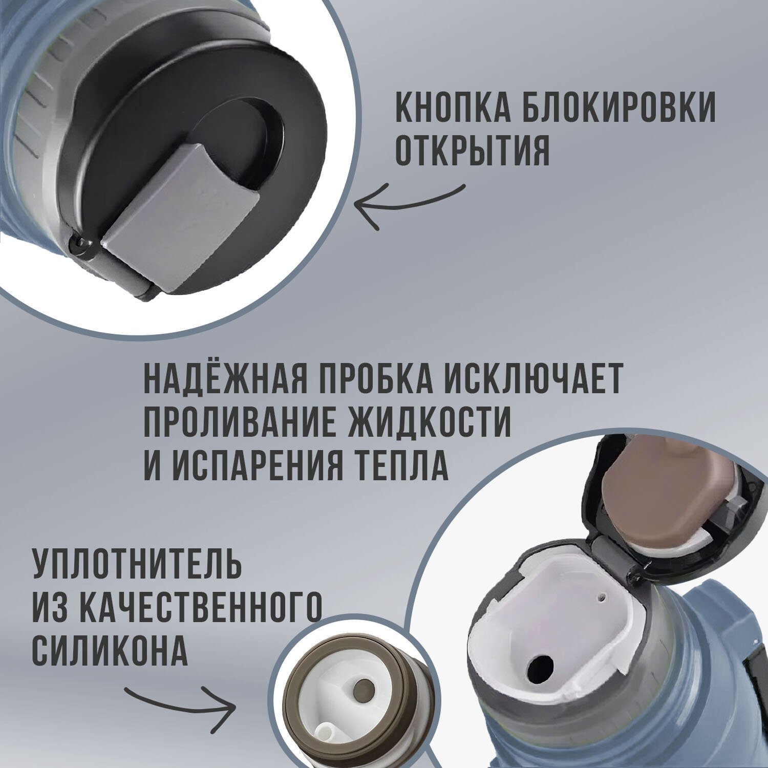 Силиконовые уплотнители высокого качества в крышке обеспечивают термосу герметичность.