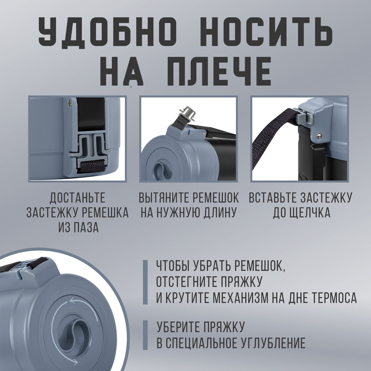 Наличие ремешка и ручки обеспечит комфортное использование.