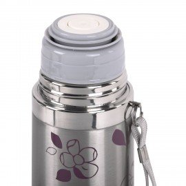 Термос диаметром 6,5 см и высотой 25 см оснащен специальной кнопкой, позволяющей наливать напитки, не отвинчивая пробку. Наличие ремешка обеспечит комфортное использование.
