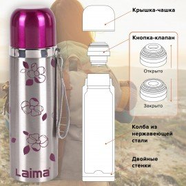Термос LAIMA с узким горлом, 0,5 л, нержавеющая сталь, с рисунком, 601410