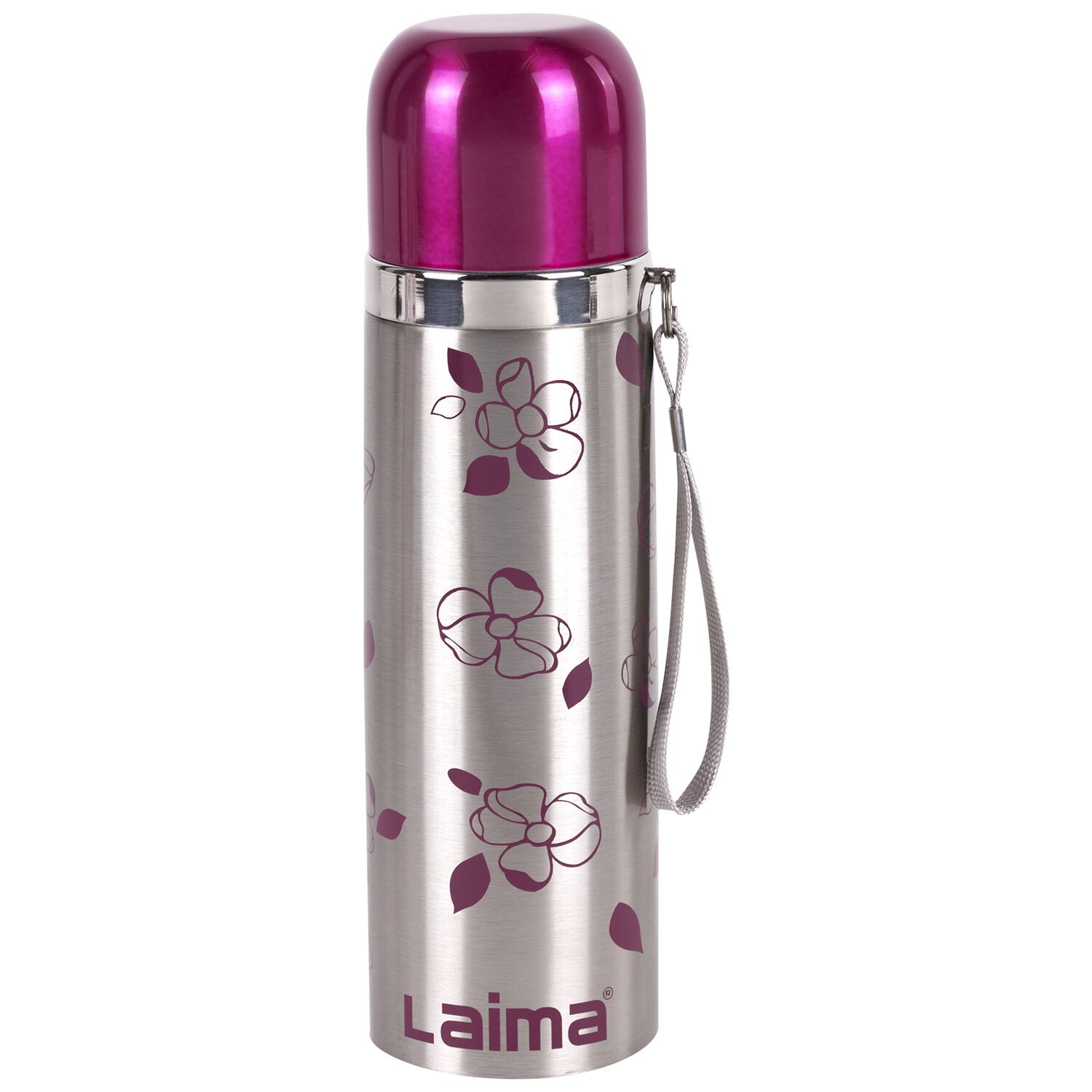 Термос LAIMA классический с узким горлом (2 чашки) 0,5 л, нержавеющая сталь, розовый, 605120