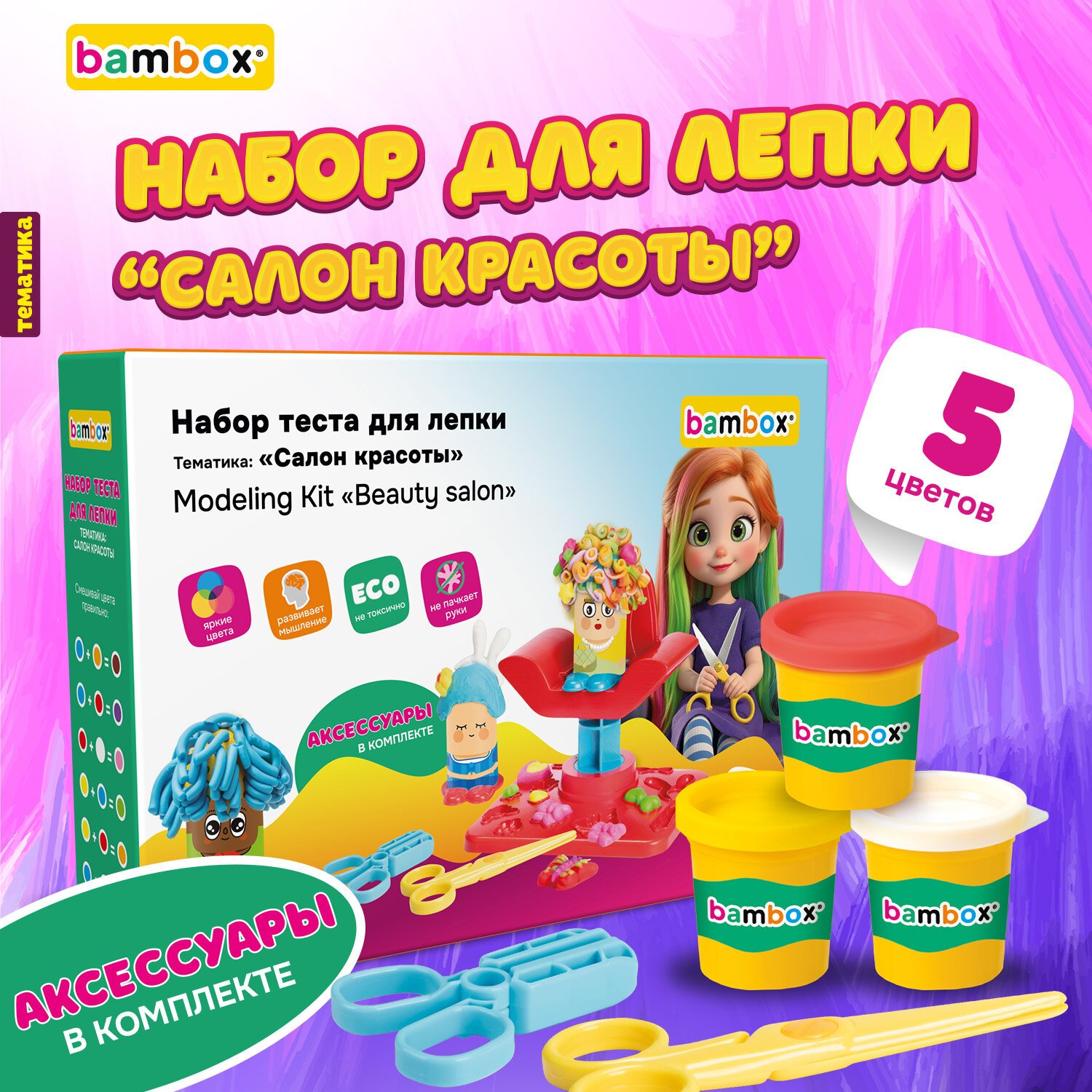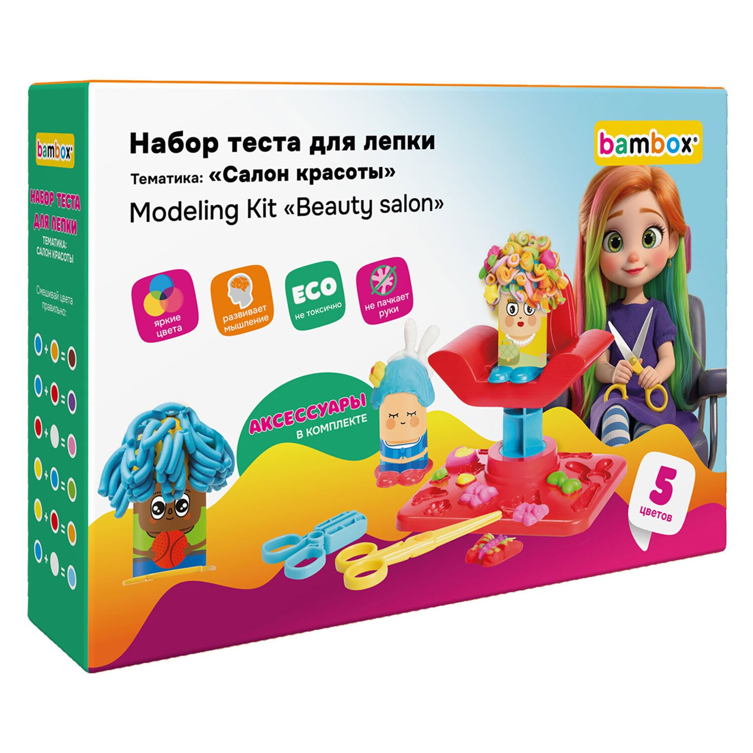 Тесто пластилин для лепки BAMBOX (БАМБОКС), НАБОР "Салон красоты" с парикмахерским креслом, 107254