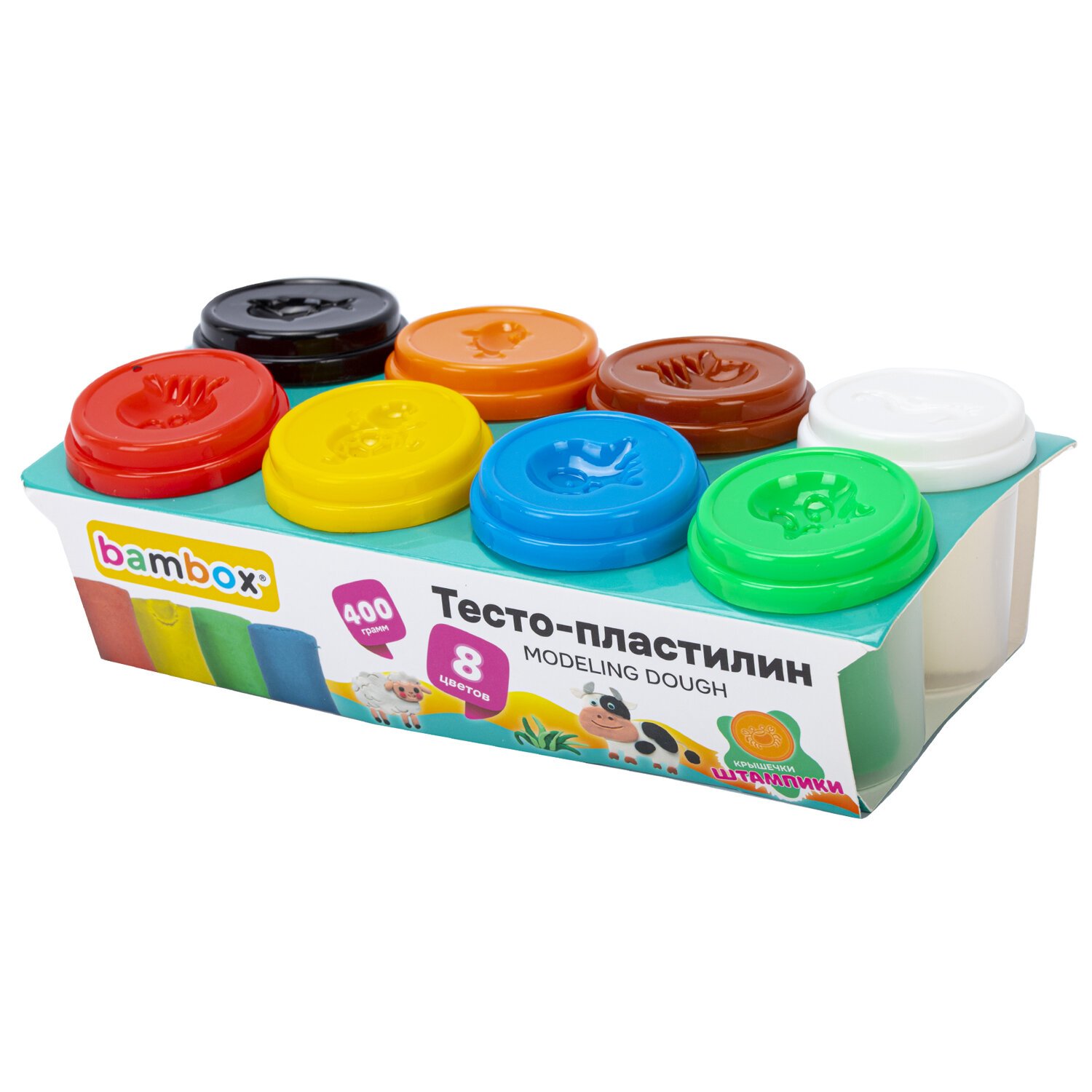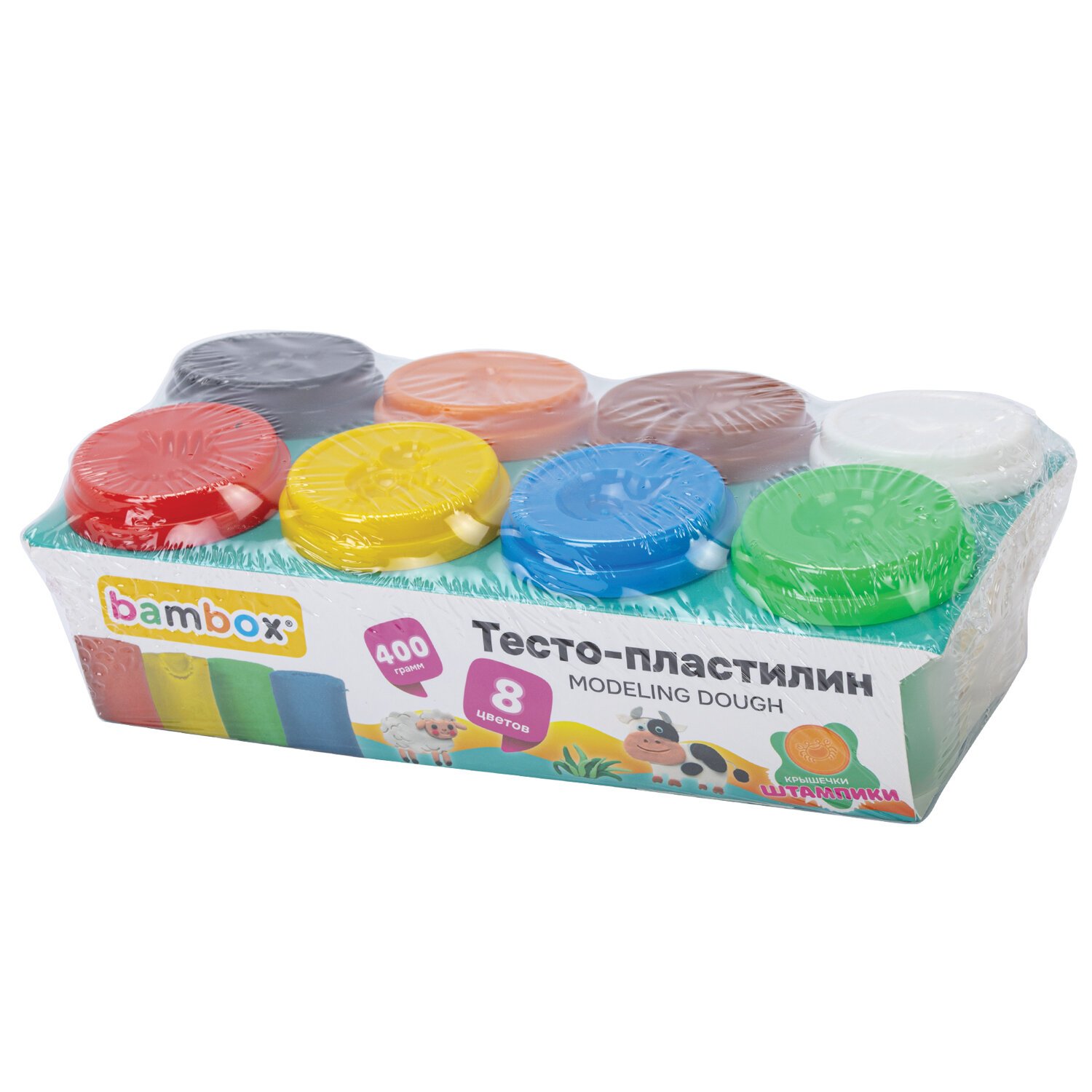 Тесто пластилин для лепки СУПЕР ПЛАСТИЧНОЕ, 8 цветов, 400г, крышки-штампики, BAMBOX (БАМБОКС), 107248