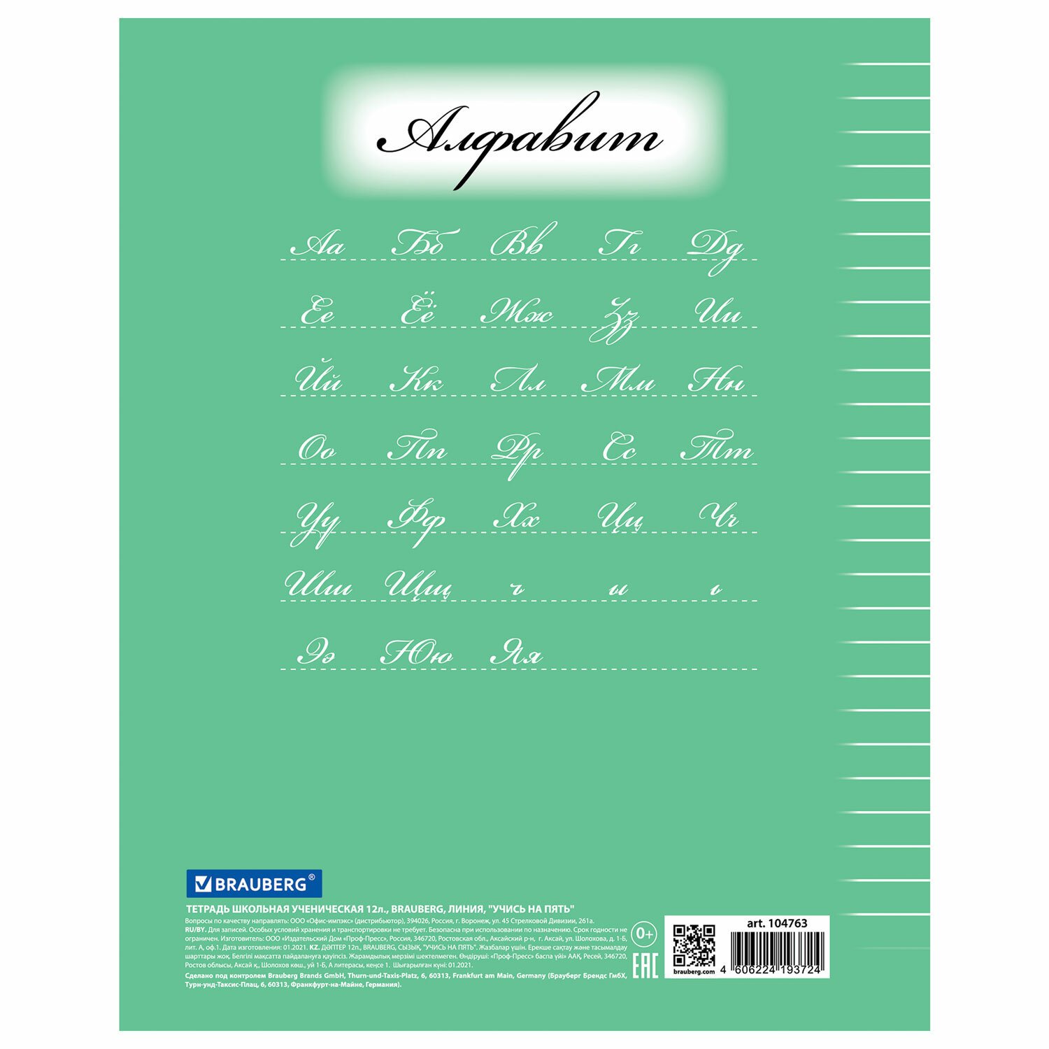 Ученическая тетрадь BRAUBERG "ЭКО" с классическим оформлением обложки. Подходит для письма шариковыми, гелевыми и капиллярными ручками.