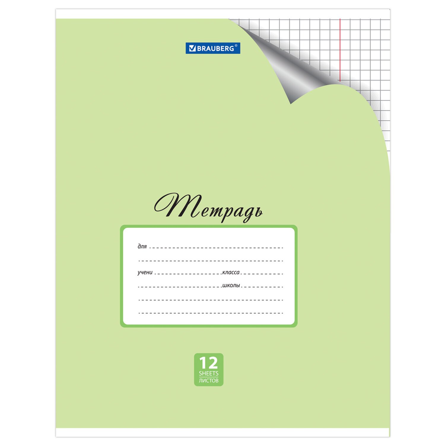 Тетрадь 12 л. BRAUBERG ЭКО "5-КА", клетка, обложка плотная мелованная бумага, ЗЕЛЕНАЯ, 104759