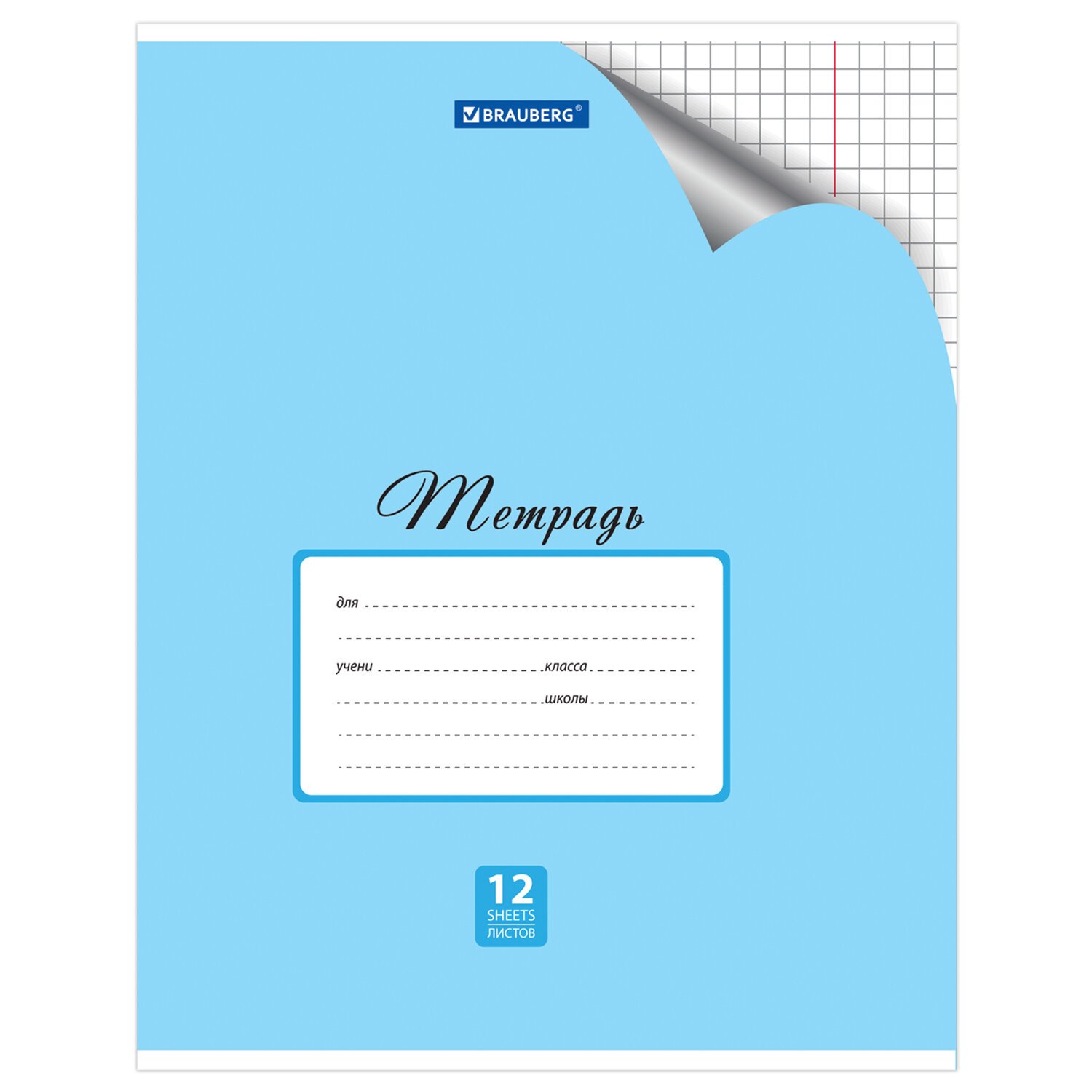 Тетрадь 12 л. BRAUBERG ЭКО "5-КА", клетка, обложка плотная мелованная бумага, СИНЯЯ, 104760