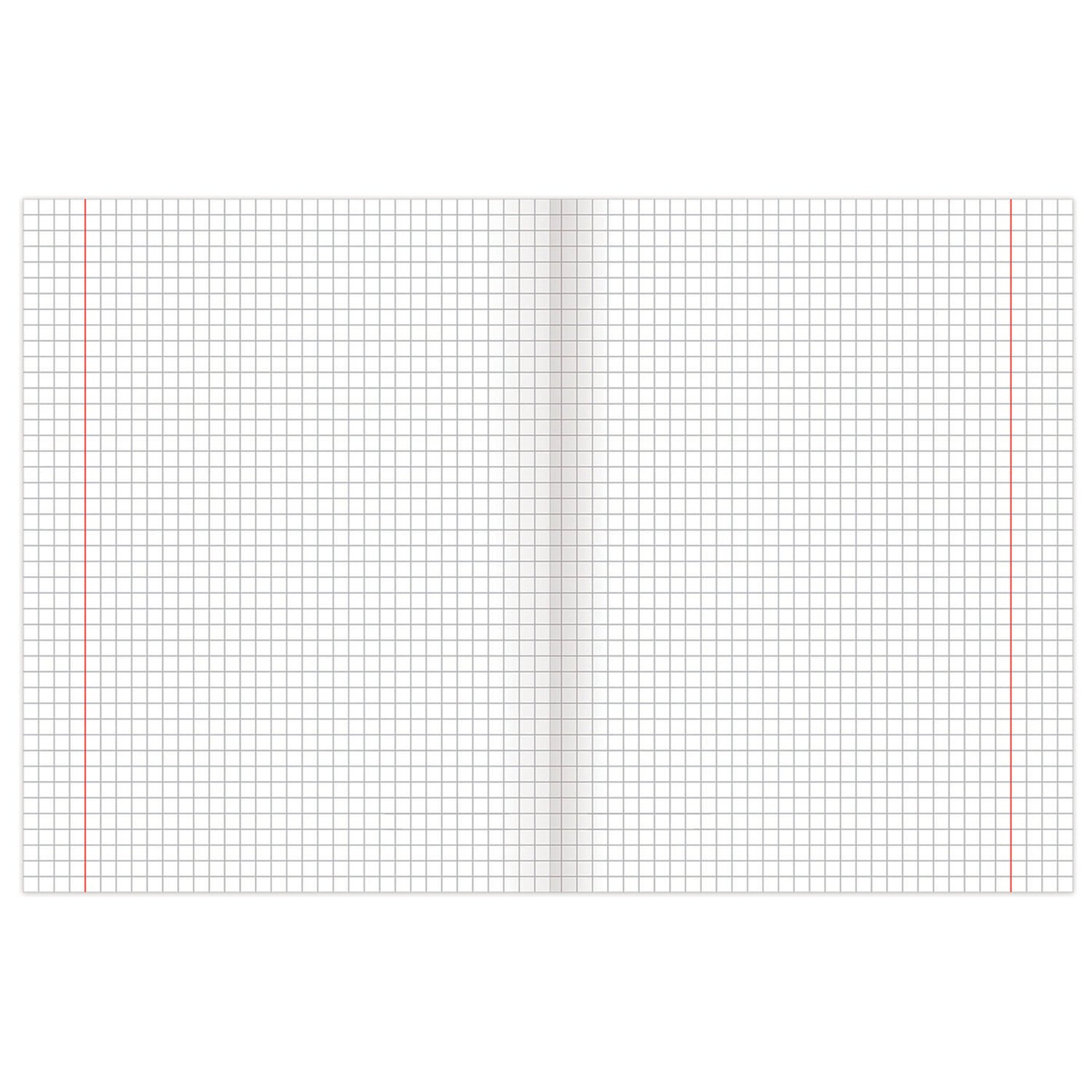 Внутренний блок плотностью 65 г/м2 из офсетной бумаги содержит 12 листов. Линовка - клетка с полями. Обложка также изготовлена из офсета, но бОльшей плотности. Скрепка надежно скрепляет листы между собой.