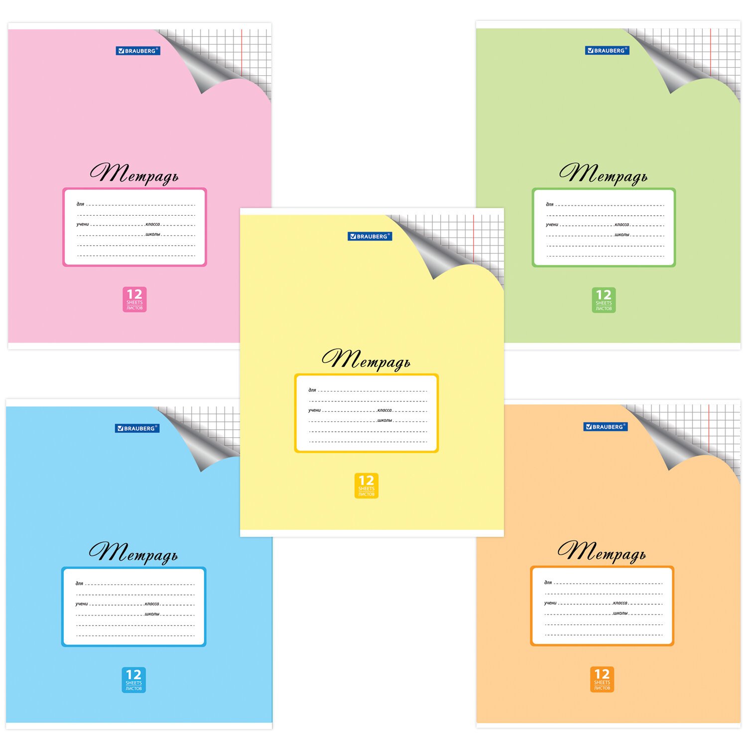 Тетрадь 12 л. BRAUBERG КЛАССИКА, клетка, обложка картон, АССОРТИ (5 видов), 103273