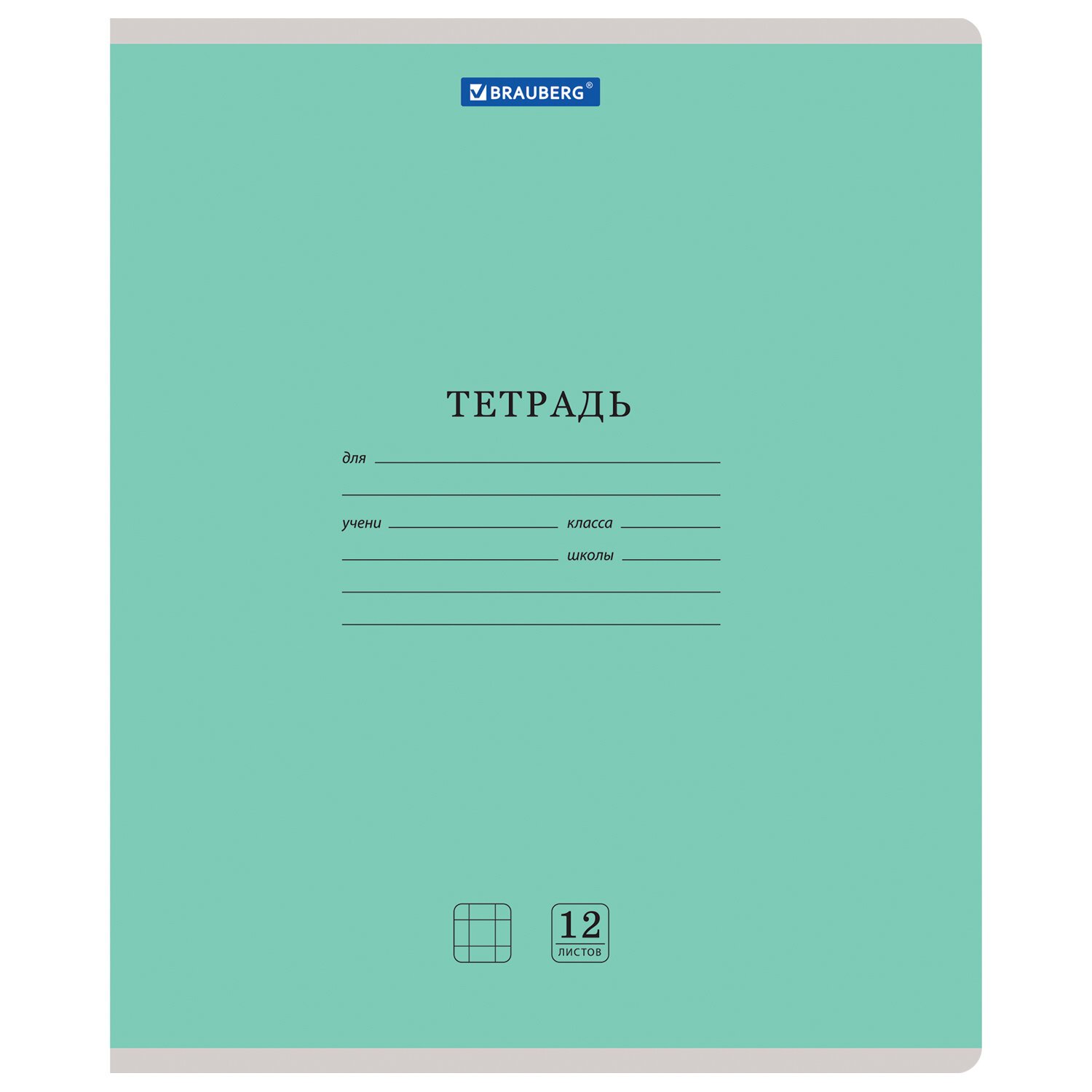 Тетрадь 12 л. BRAUBERG ЭКО "5-КА", клетка, обложка плотная мелованная бумага, ЗЕЛЕНАЯ, 104759