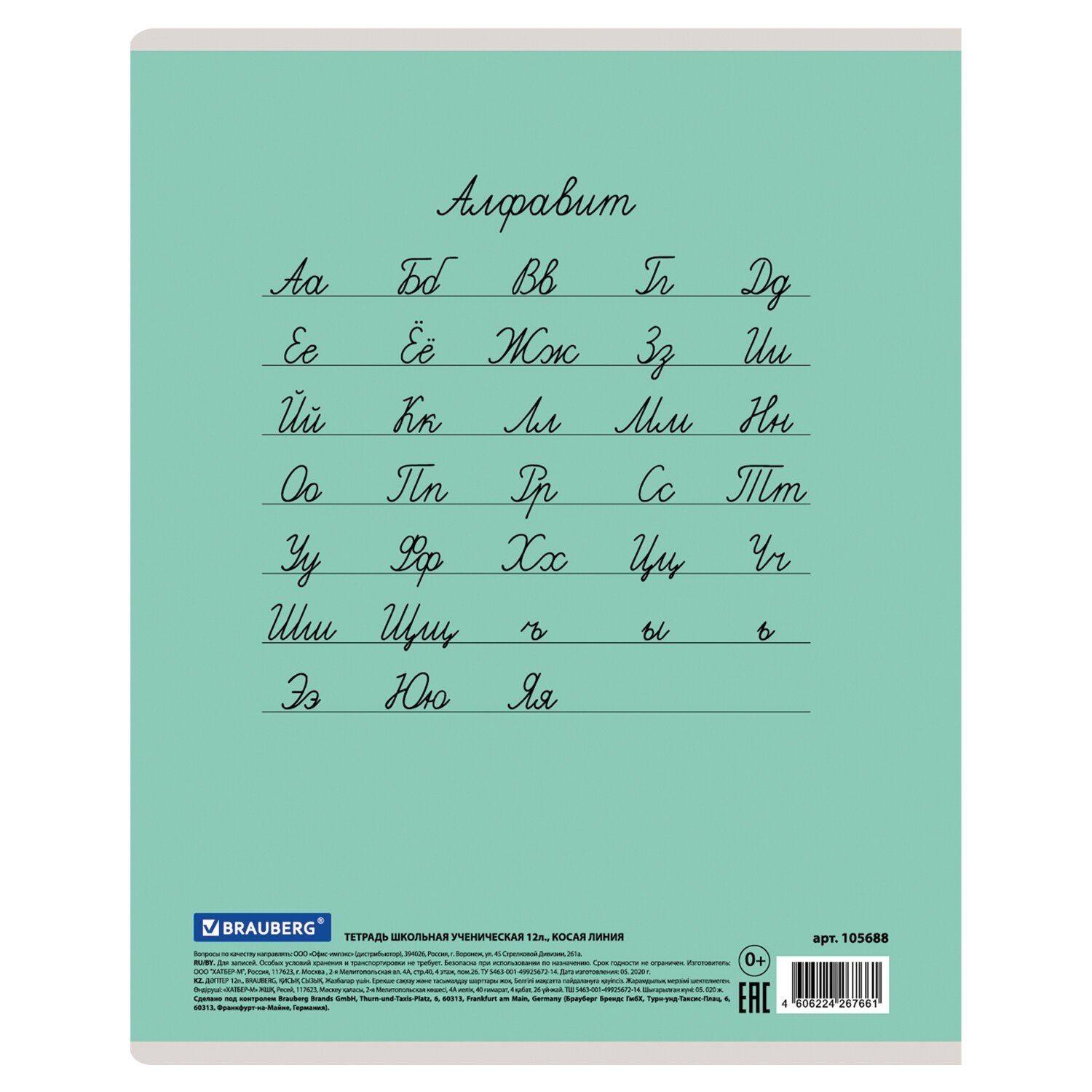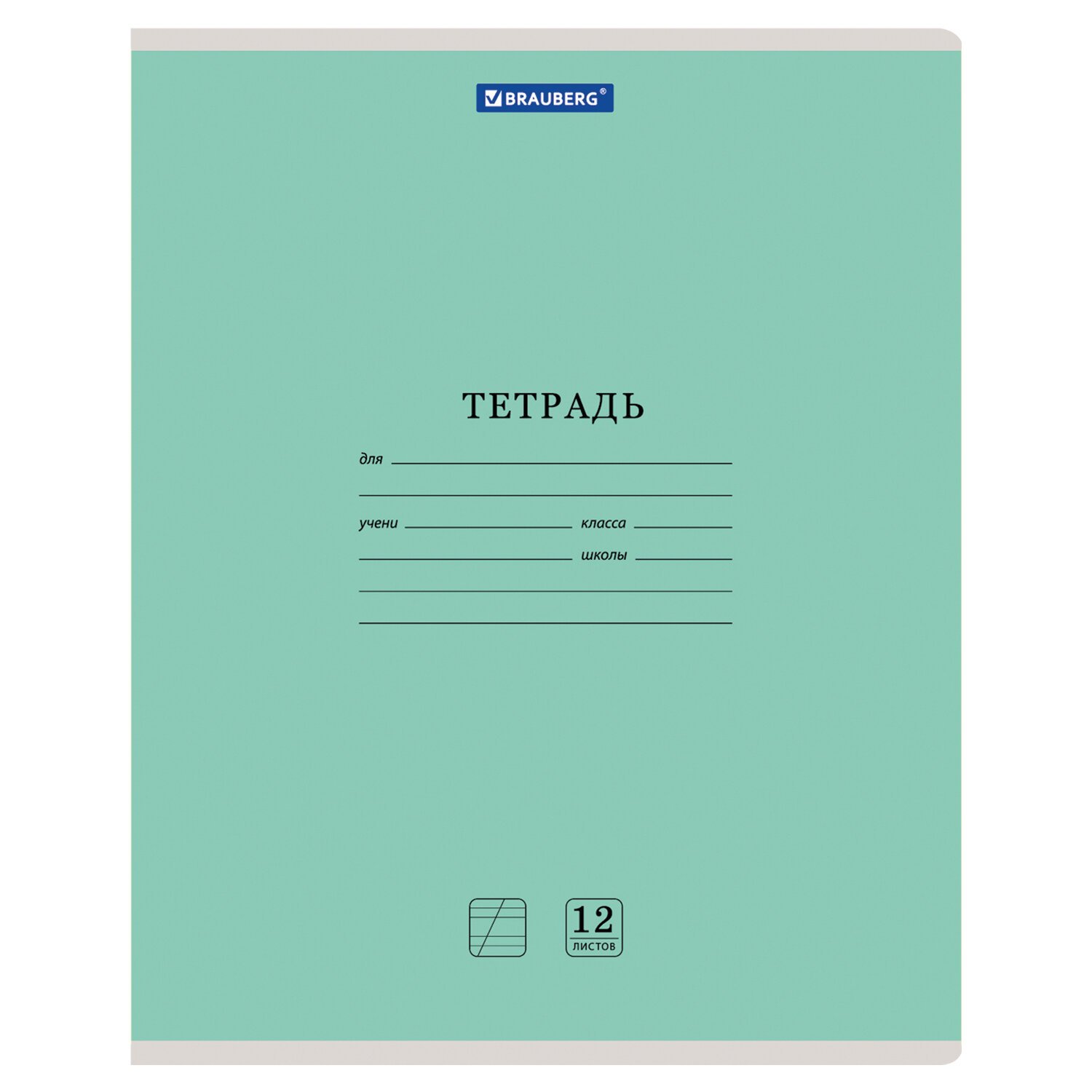 Тетрадь 12 л. BRAUBERG ЭКО "5-КА", косая линия, обложка плотная мелованная бумага, ЗЕЛЕНАЯ, 104762