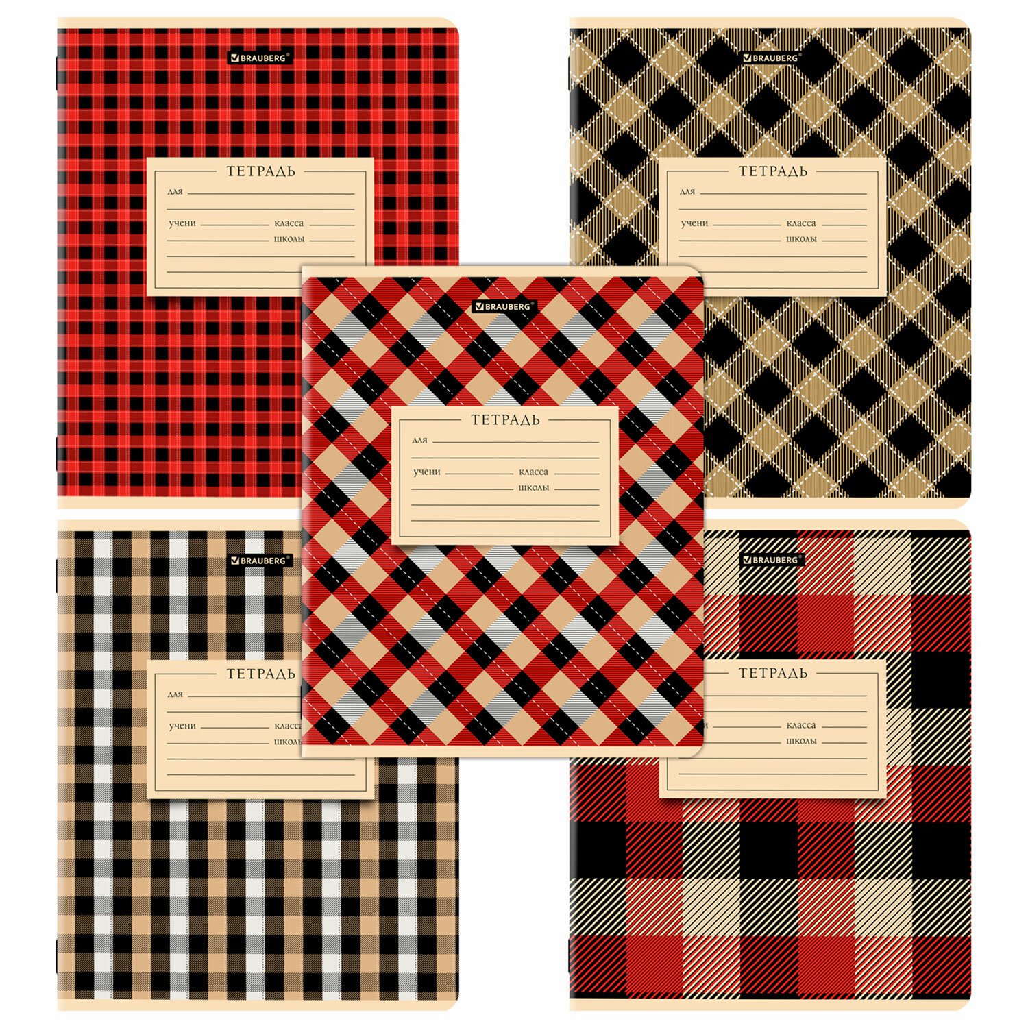 Тетрадь 12 л. BRAUBERG КЛАССИКА, клетка, обложка картон, АССОРТИ (5 видов), 103273