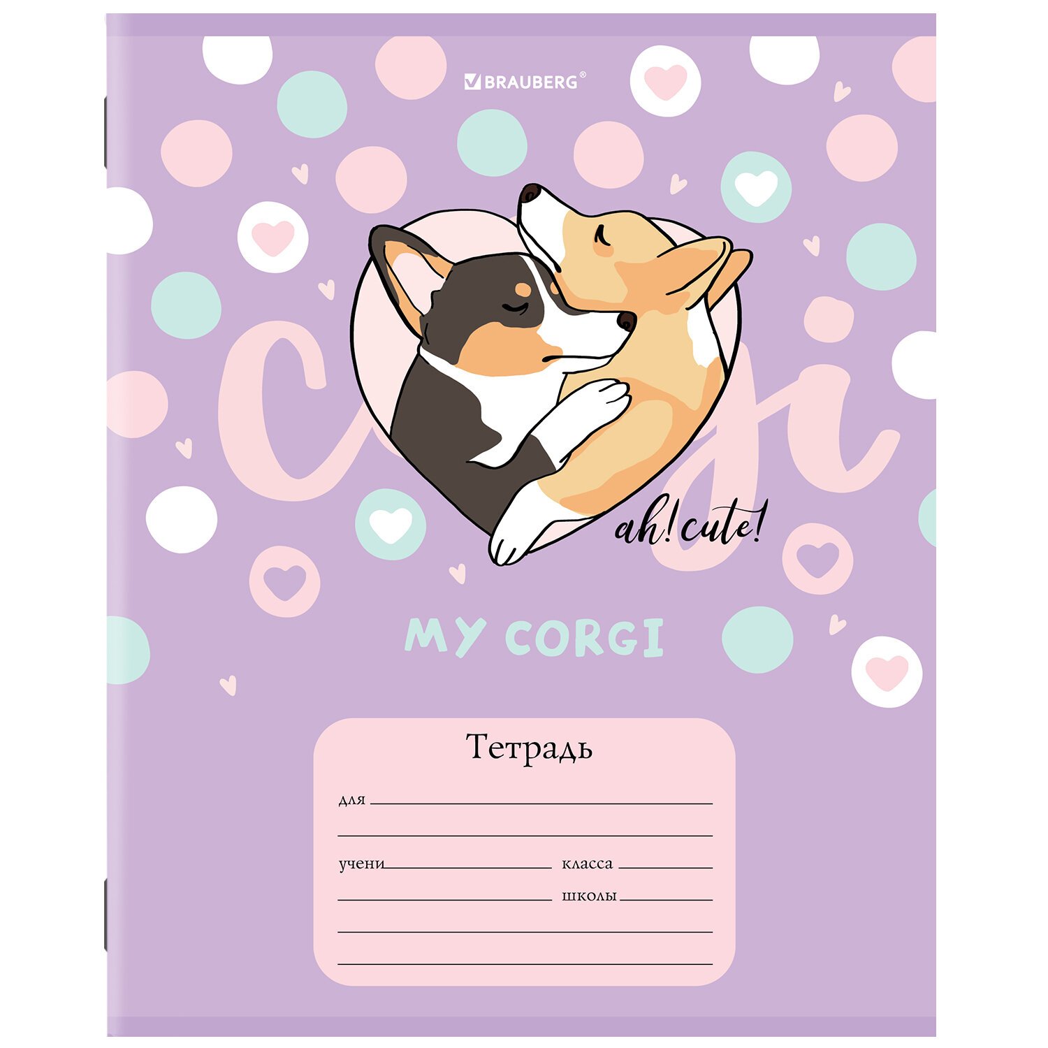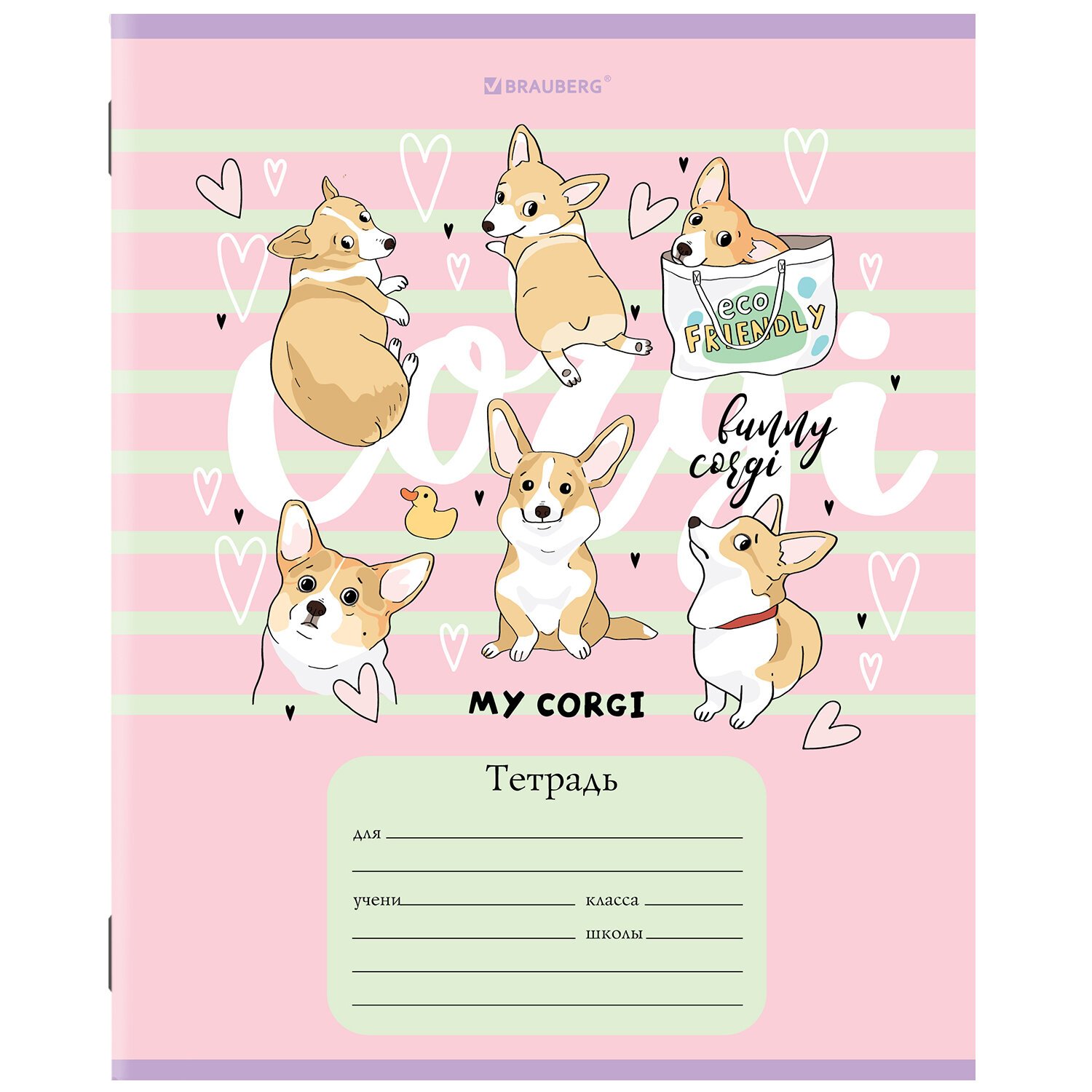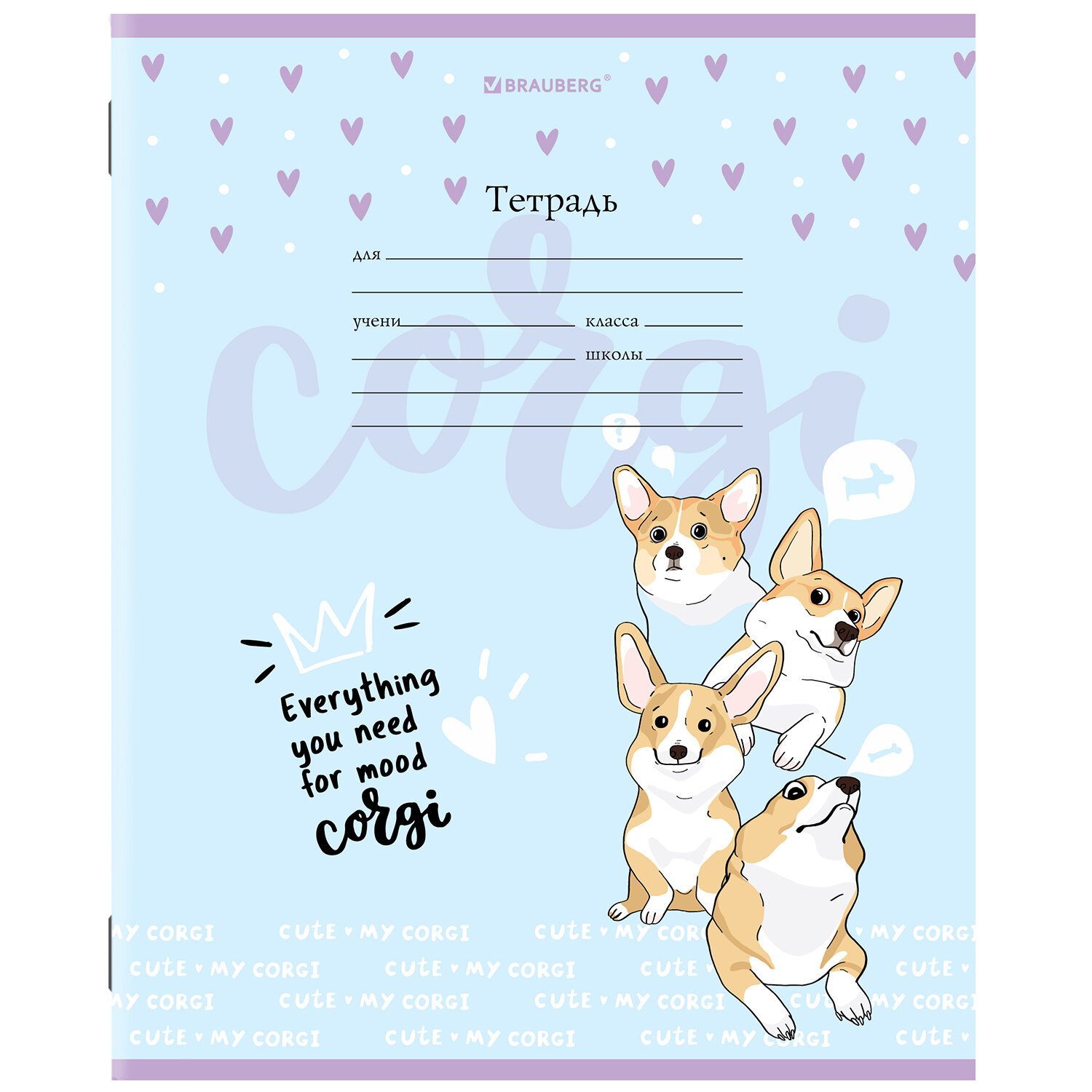 Тетрадь 12 л. BRAUBERG, клетка, обложка картон, "КОРГИ", 106460