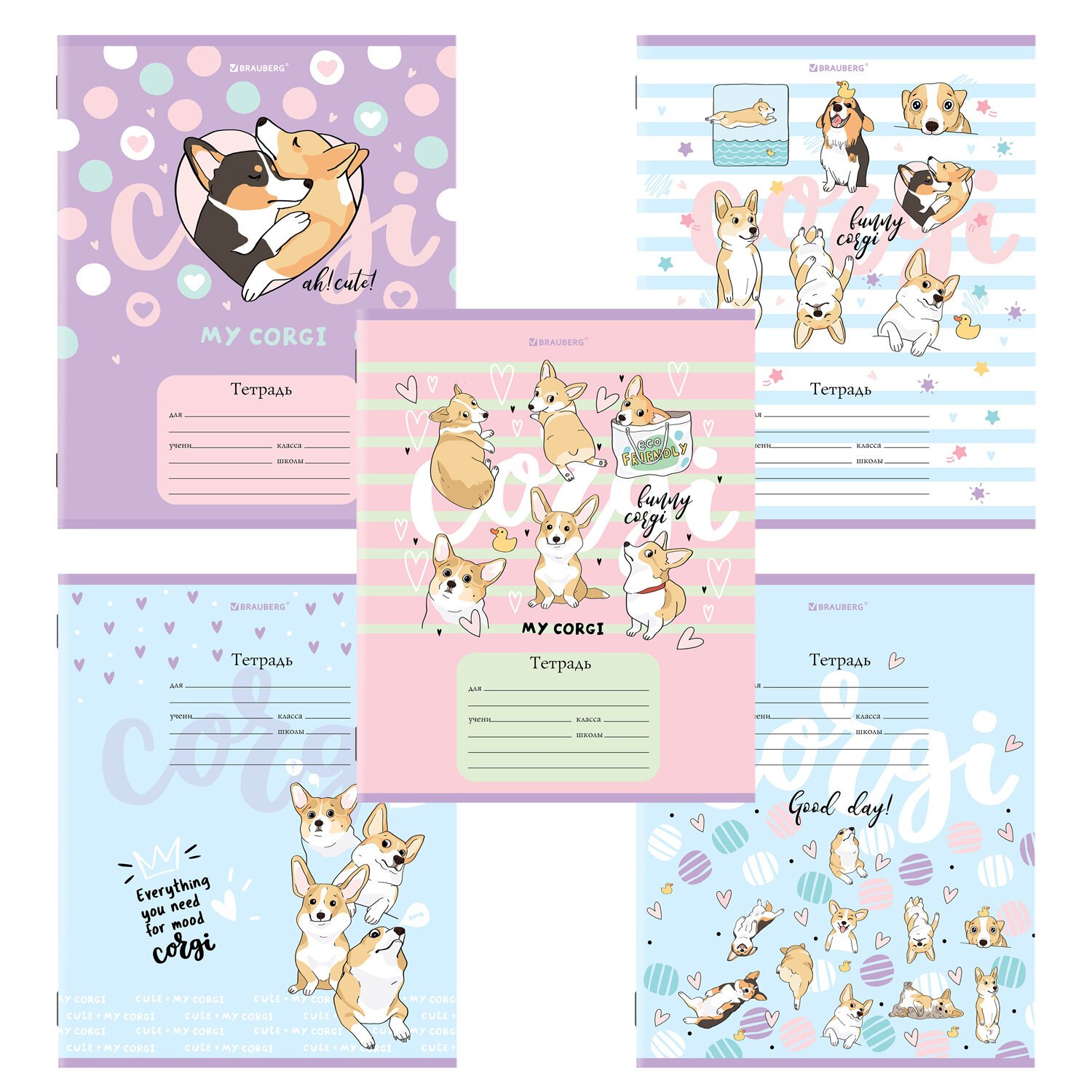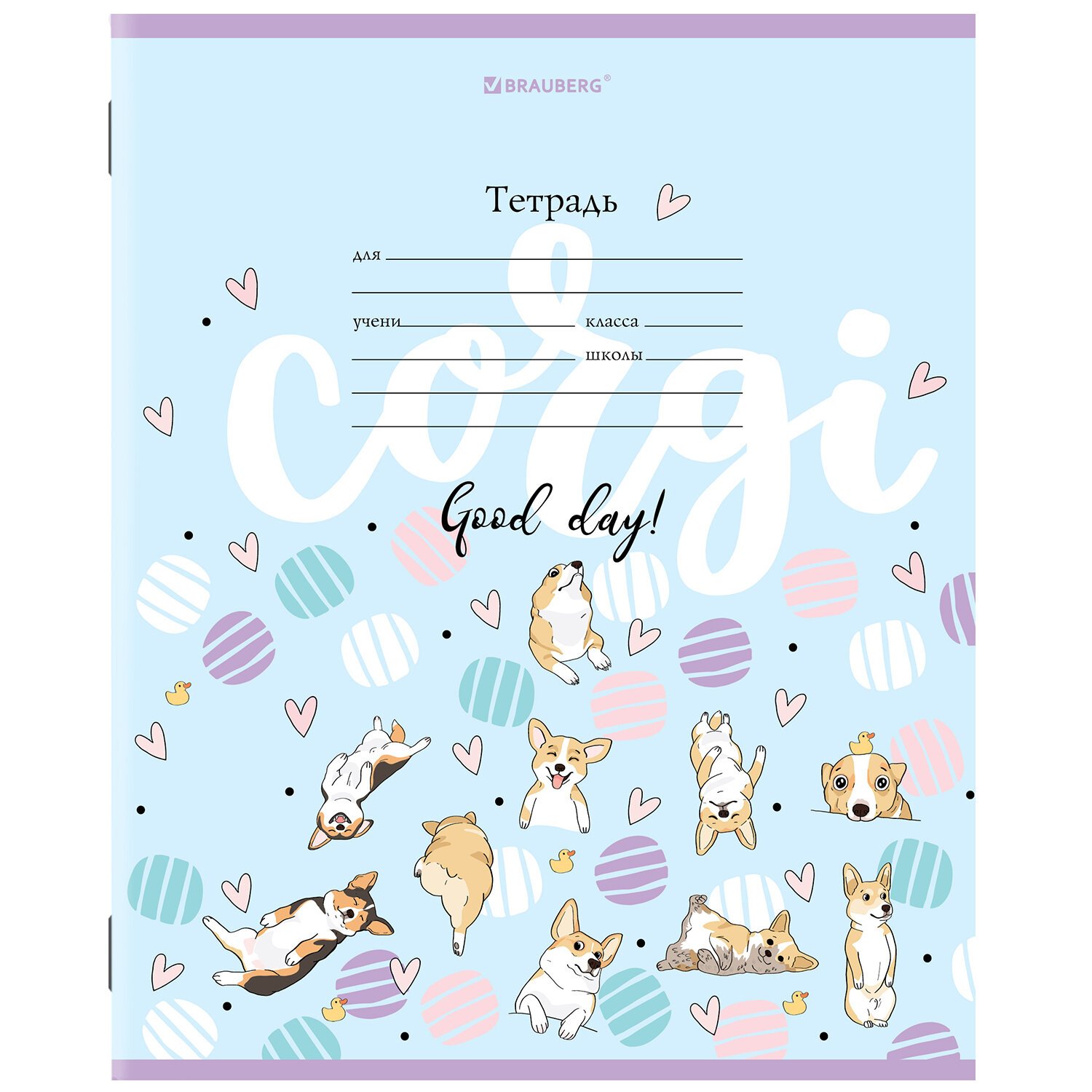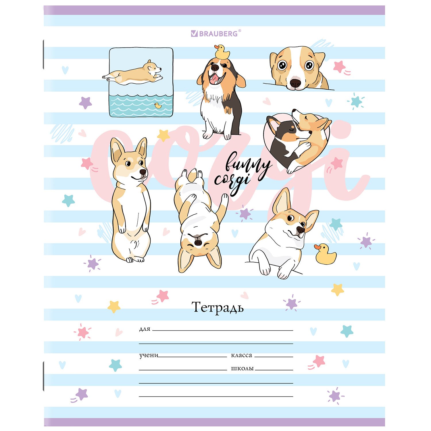 Тетрадь 12 л. BRAUBERG, клетка, обложка картон, "КОРГИ", 106460