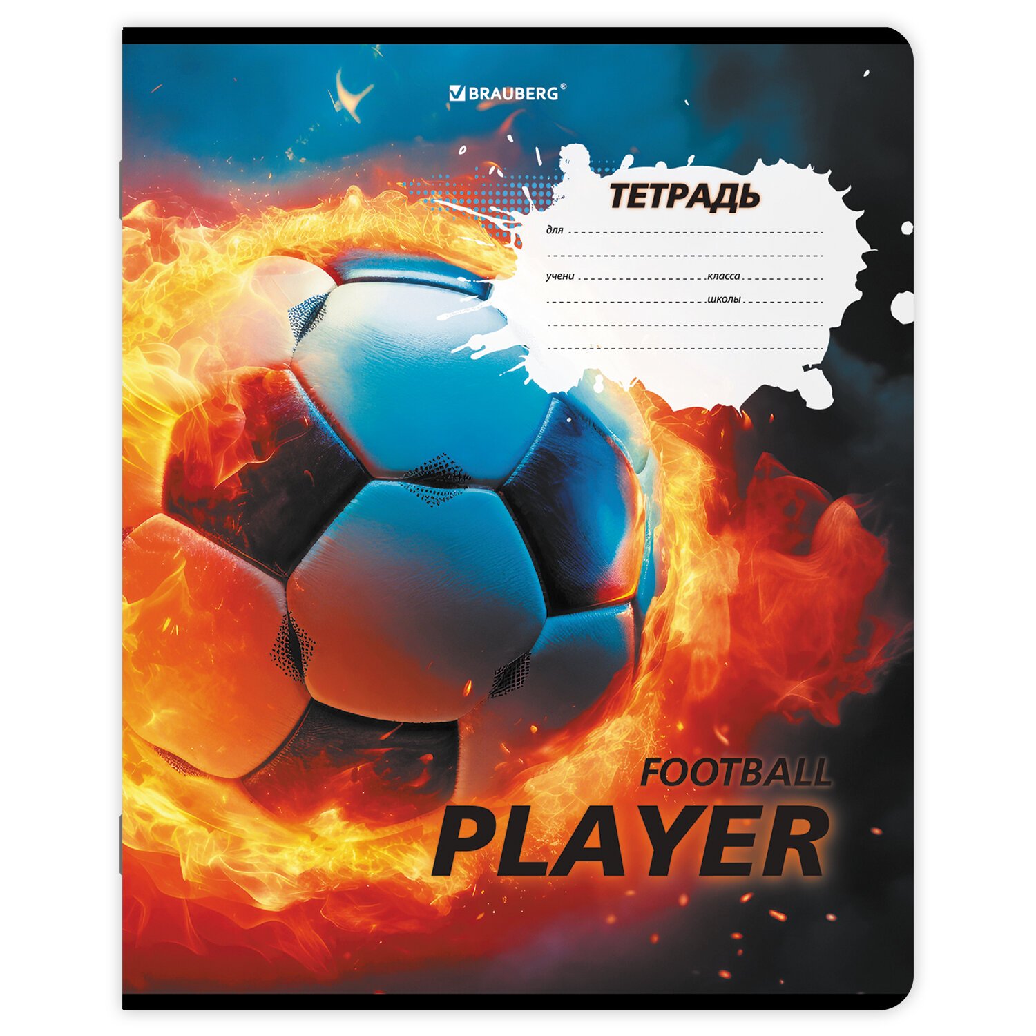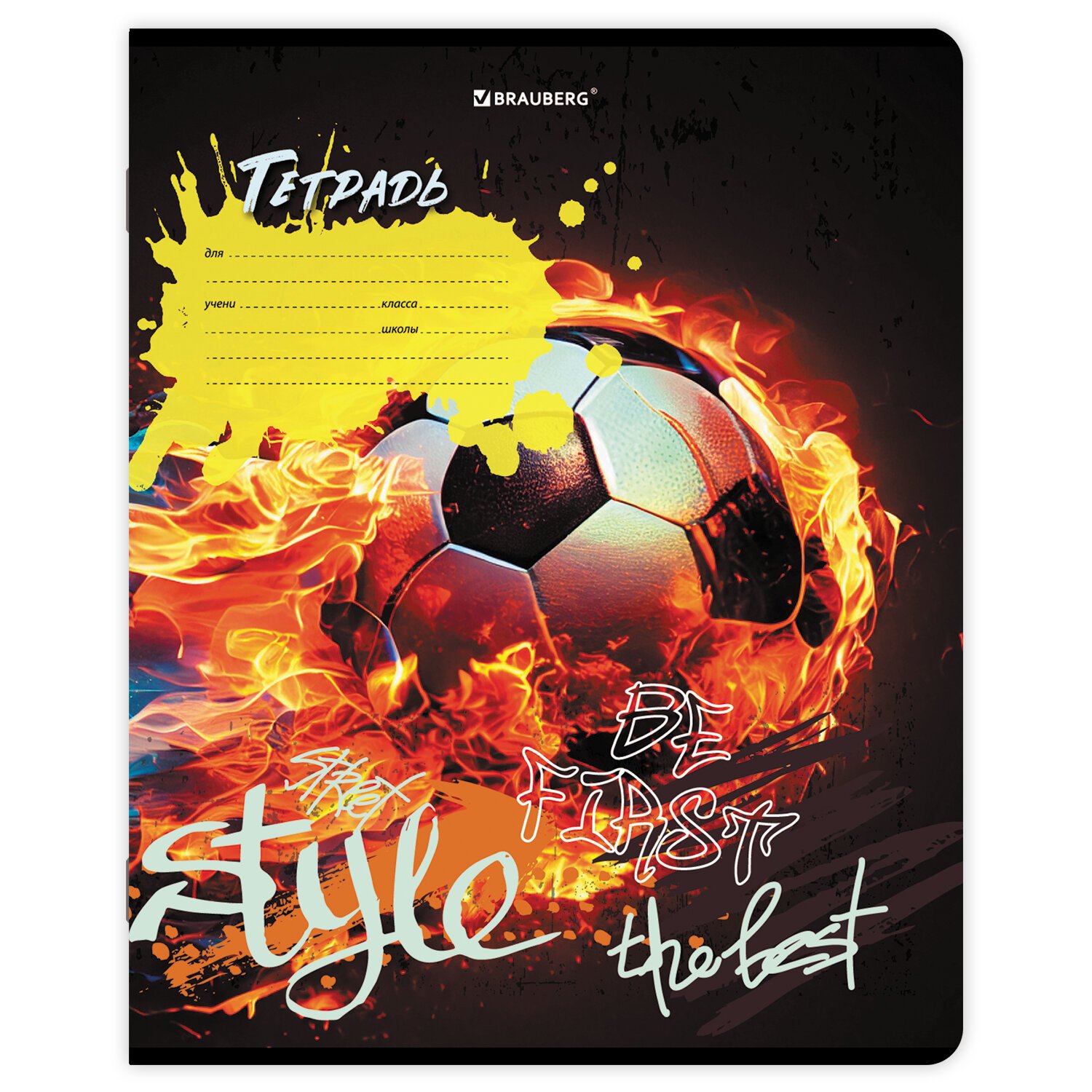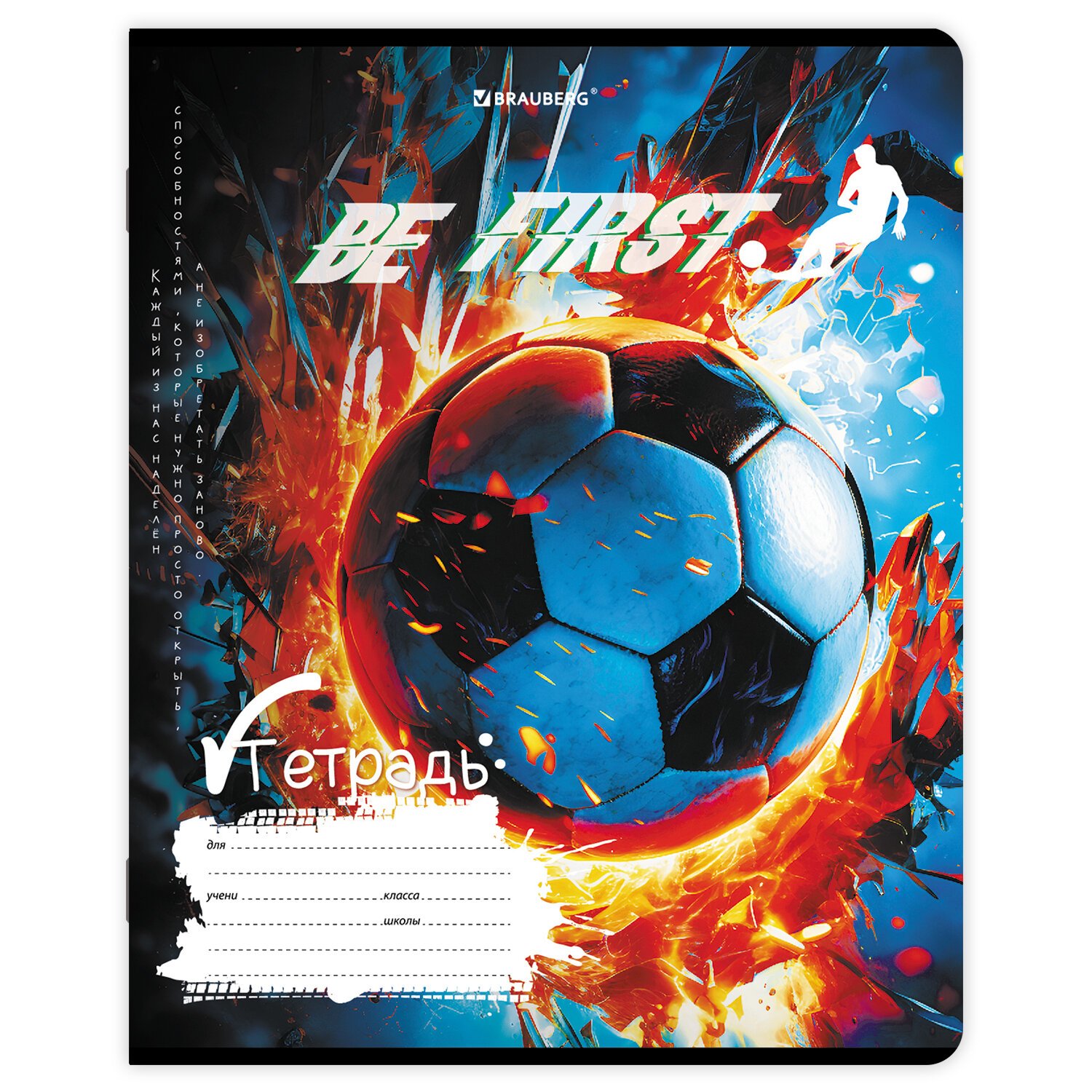 Тетрадь 12 л. BRAUBERG косая линия, обложка картон, ФУТБОЛ, 107290