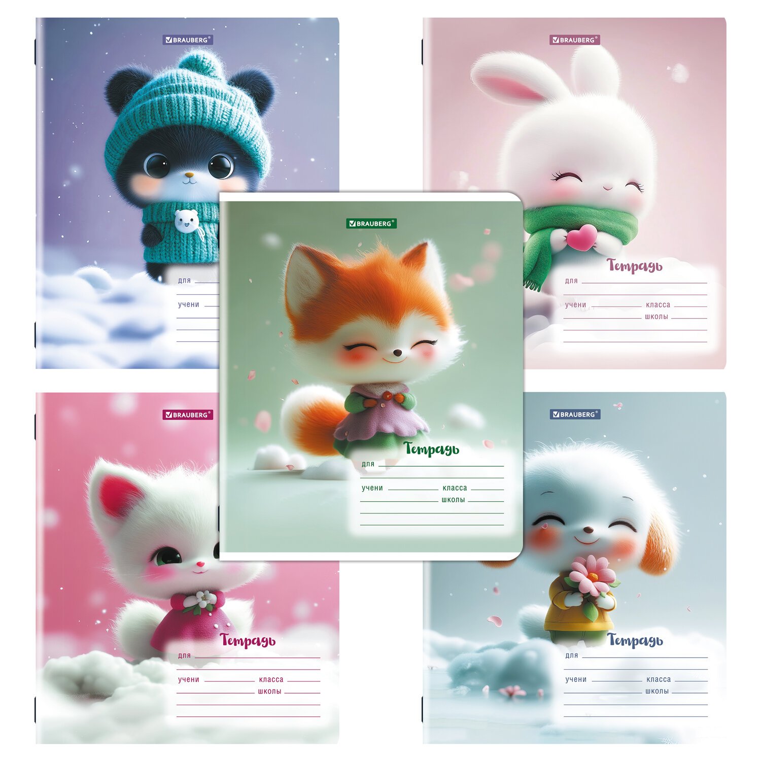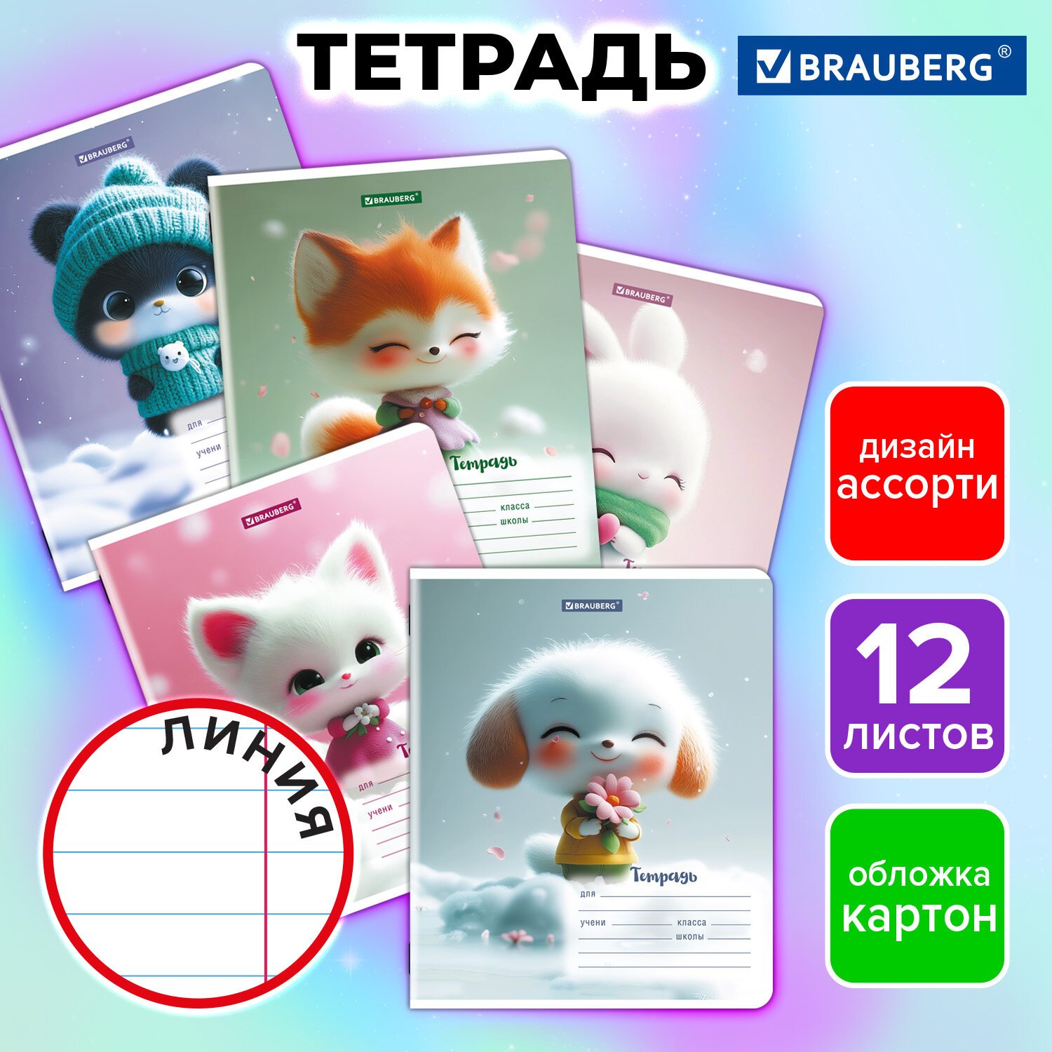 Тетрадь 12 л. BRAUBERG, линия, обложка картон, МИЛЫЕ ЗВЕРУШКИ, 107287