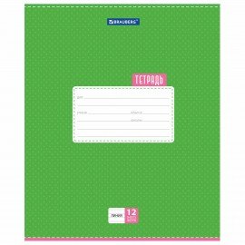 Тетрадь 12 л. BRAUBERG КЛАССИКА, линия, обложка картон, ЗЕЛЕНАЯ, 104726