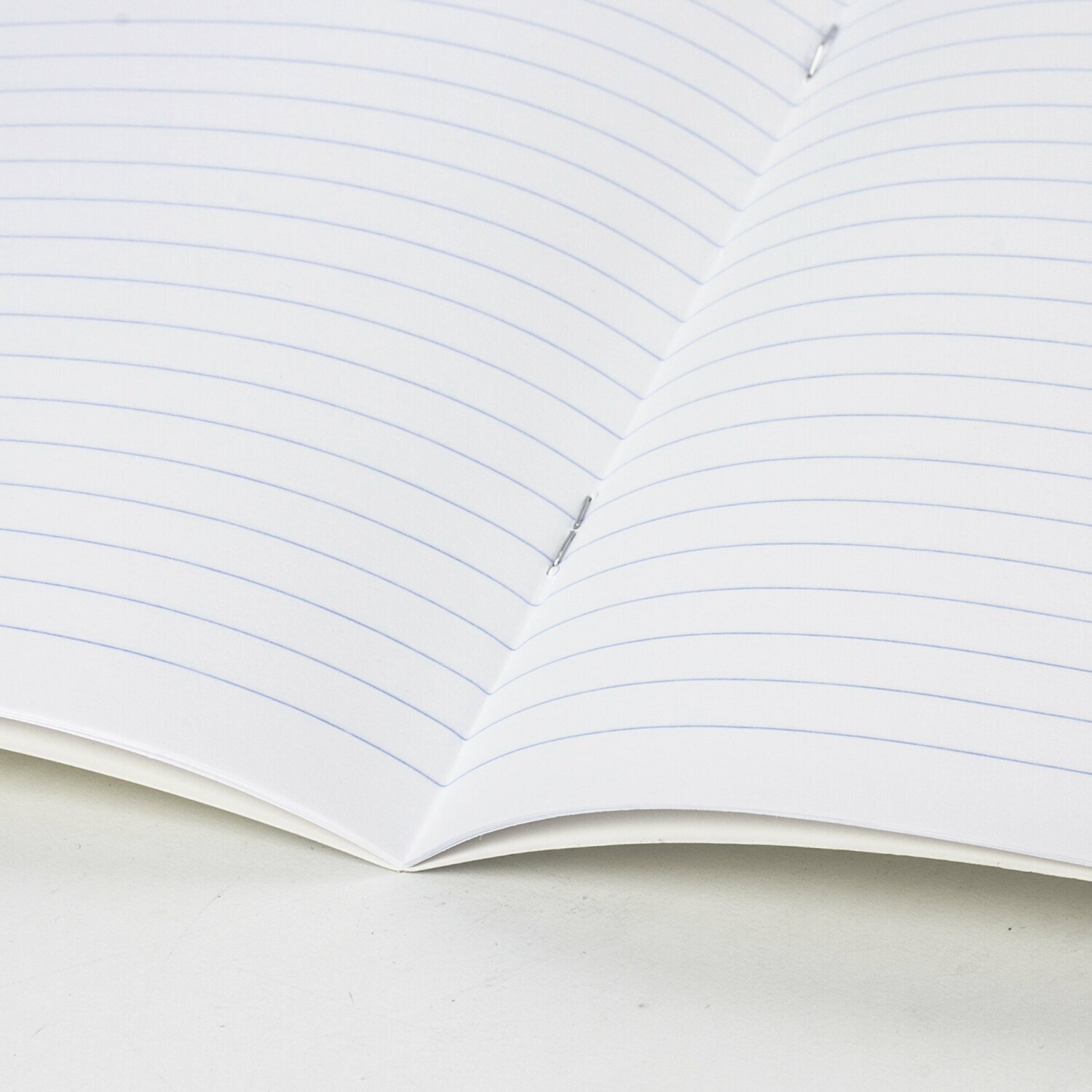 Внутренний блок плотностью 65 г/м2 из офсетной бумаги содержит 12 листов. Линовка - линия с полями. Обложка изготовлена из импортного мелованного картона. Скрепка надежно скрепляет листы между собой.
