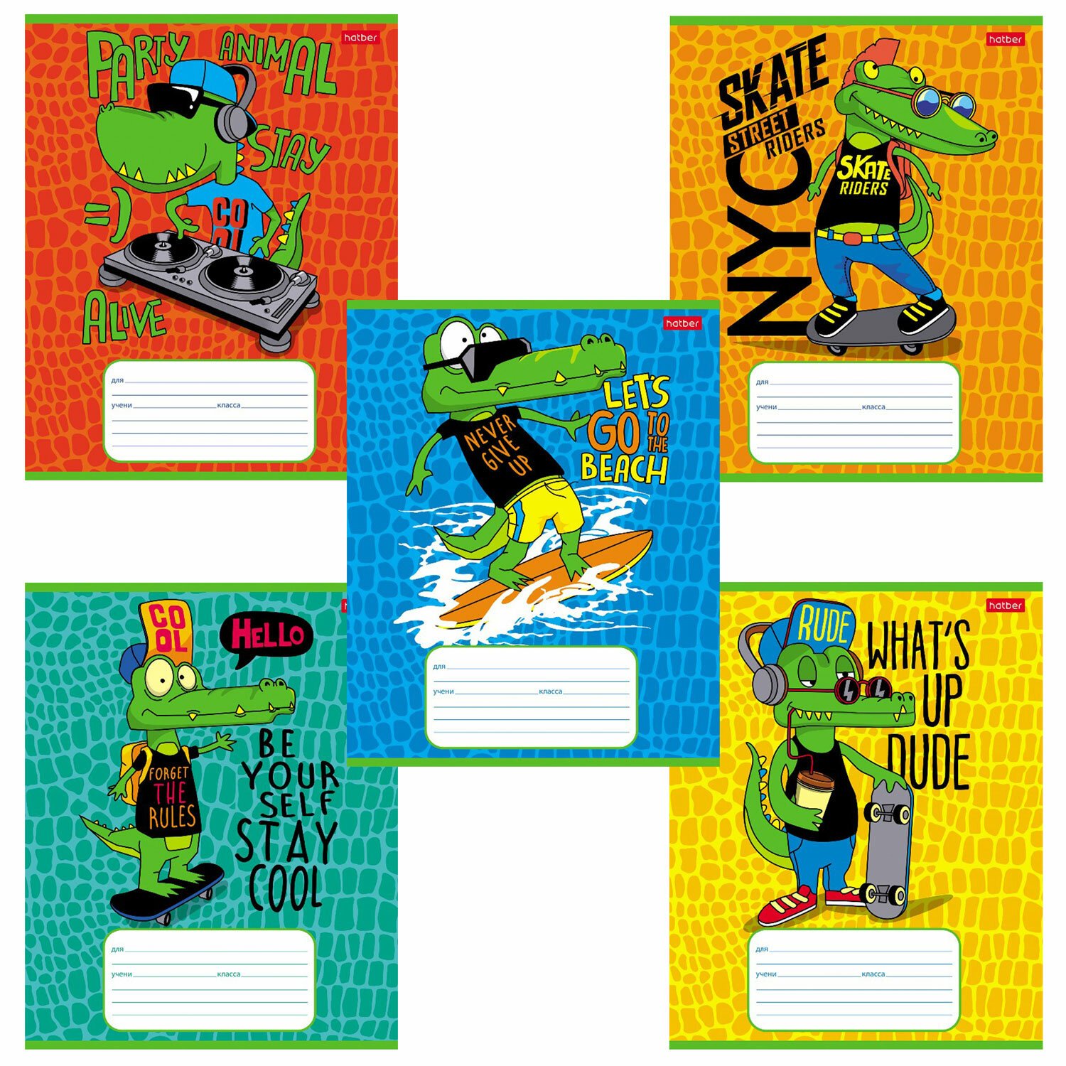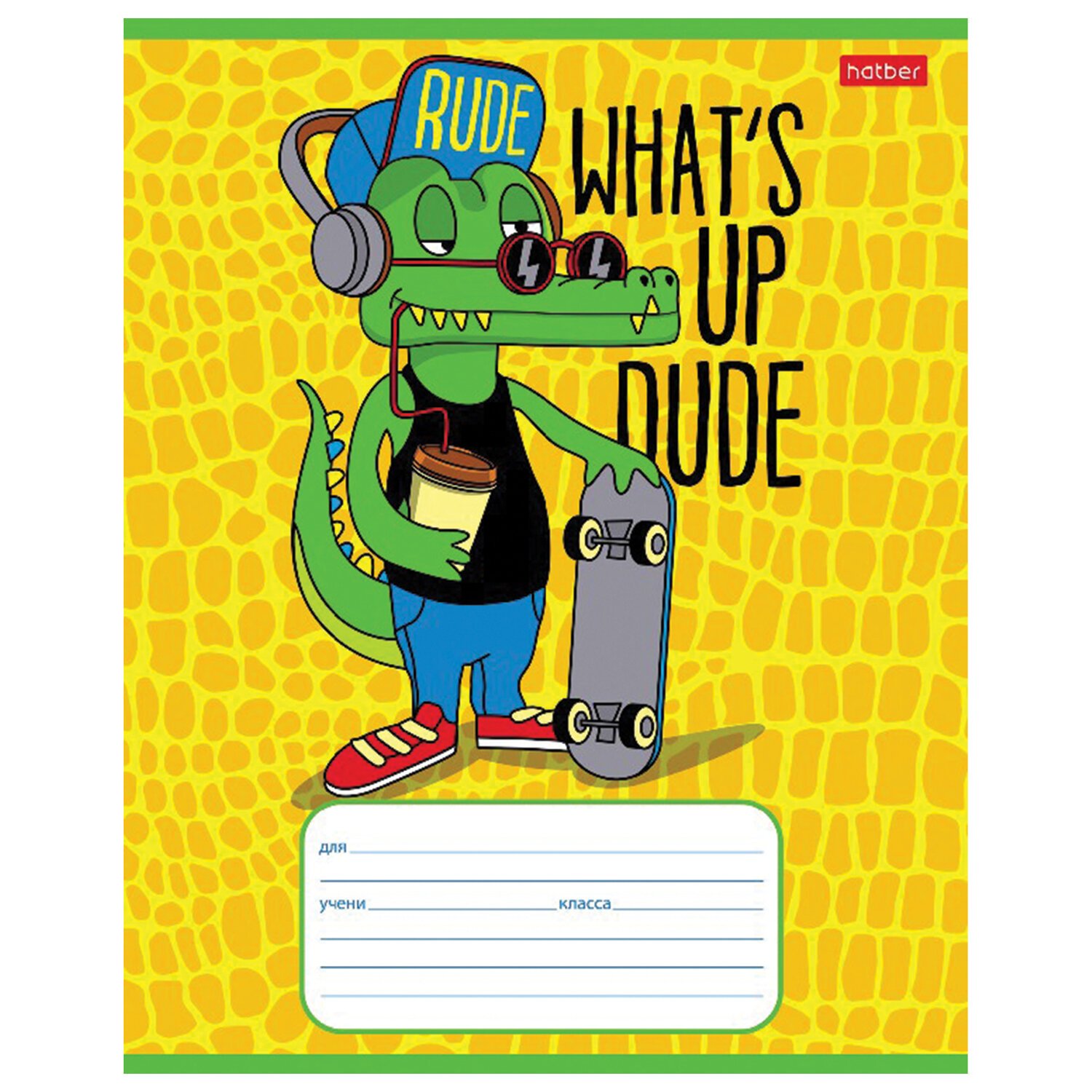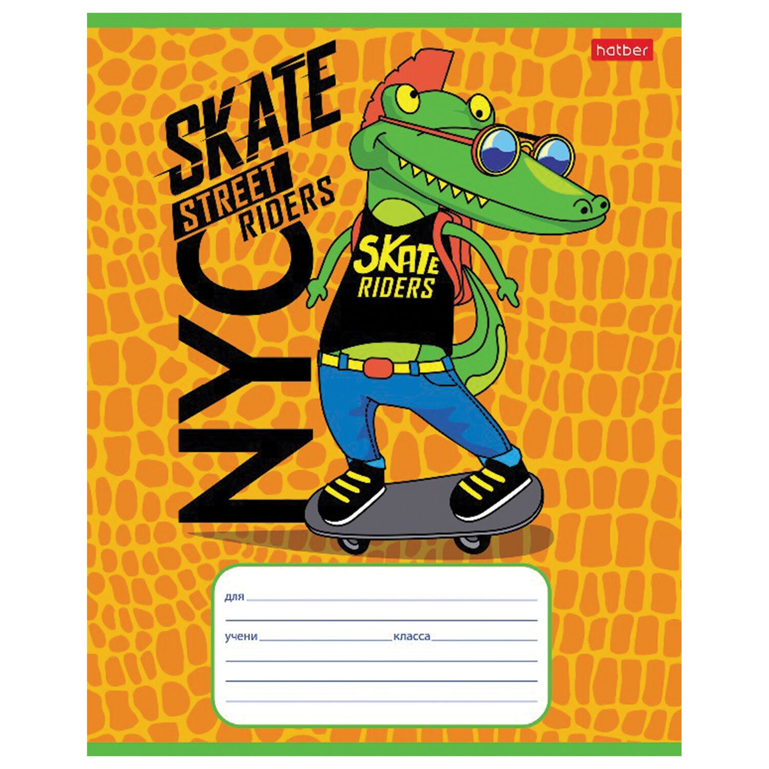 Тетрадь 12 л. HATBER клетка, обложка картон, "Croco Boys" (5 видов в спайке), 12Т5В1