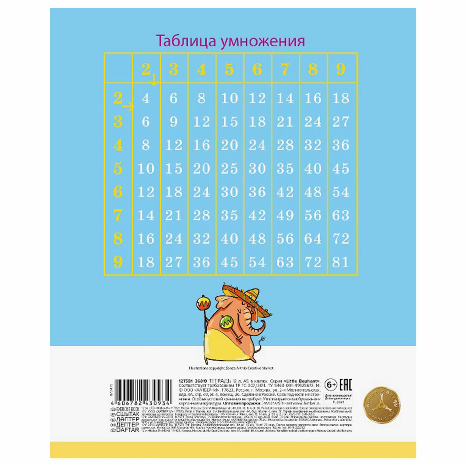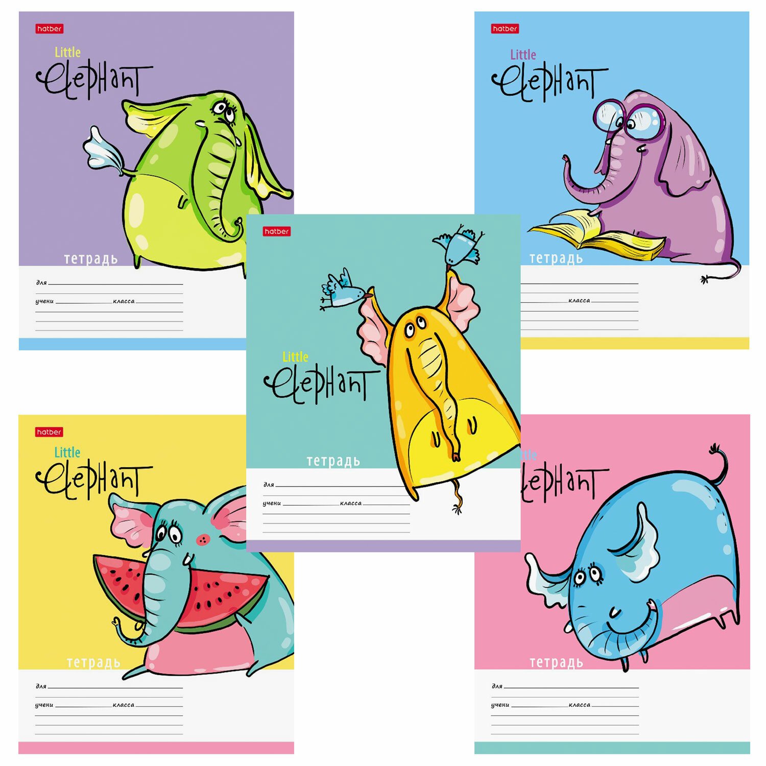 Тетрадь 12 л. HATBER клетка, обложка картон, "Little Elephant" (5 видов в спайке), 12Т5В1