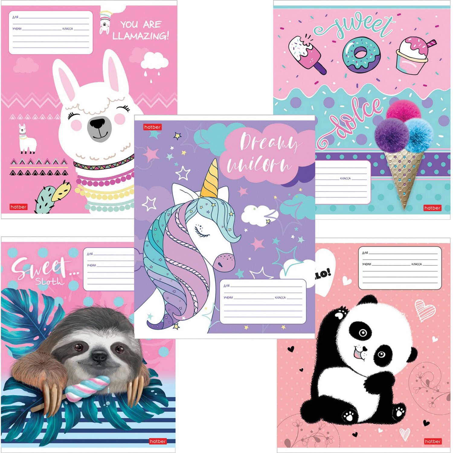 Тетрадь А5 формата содержит 12 листов. Обложка изготовлена из мелованного картона. Внутренний блок плотностью 60 г/м2 изготовлен из офсетной бумаги в клетку с красными полями. Скоба надежно скрепляет листы между собой. 5 дизайнов в спайке из 10 шт.