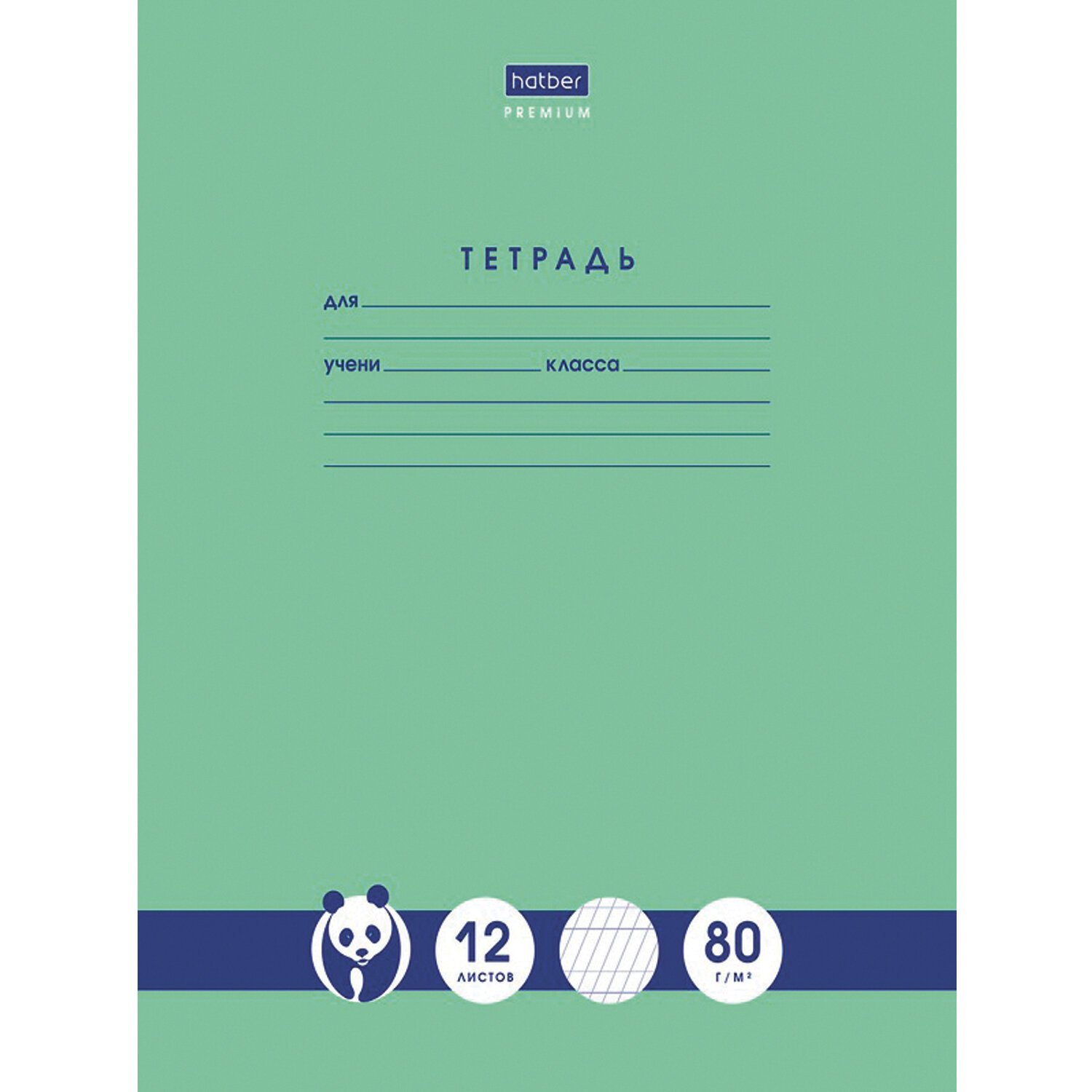 Тетрадь 12 л., HATBER Premium, частая косая линия, обложка картон, "Панда", 12Т5A5_23630