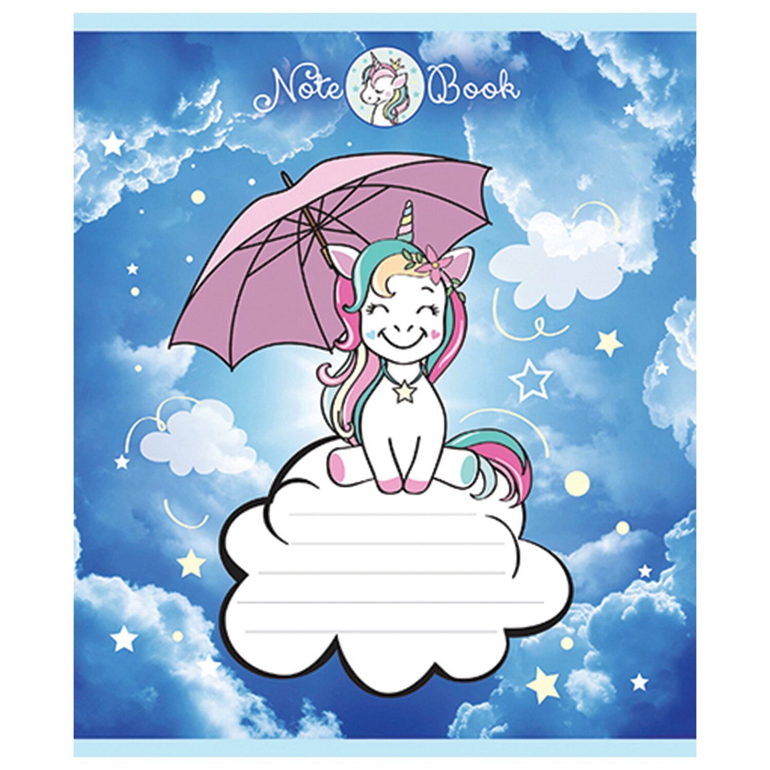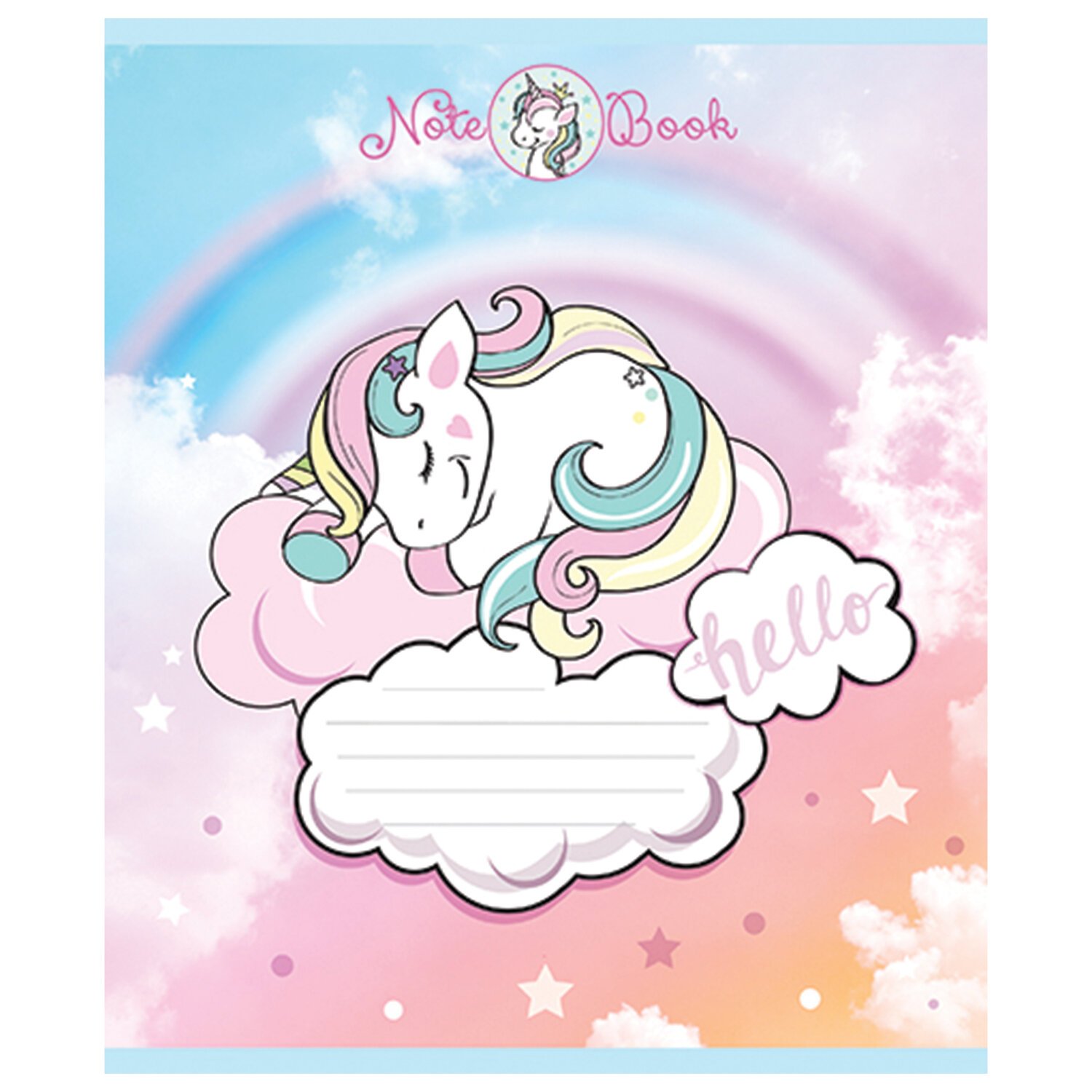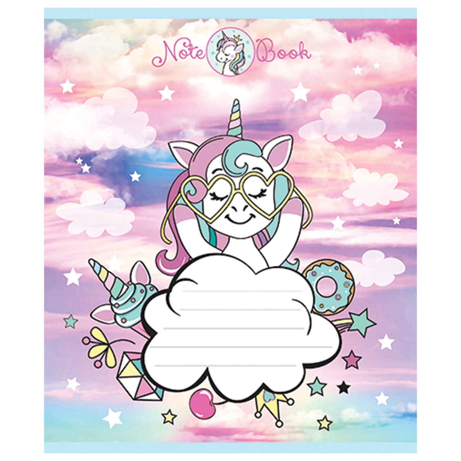 Тетрадь 12 л. ПЗБМ клетка, блестки, "Единорожки" (5 видов), 019418