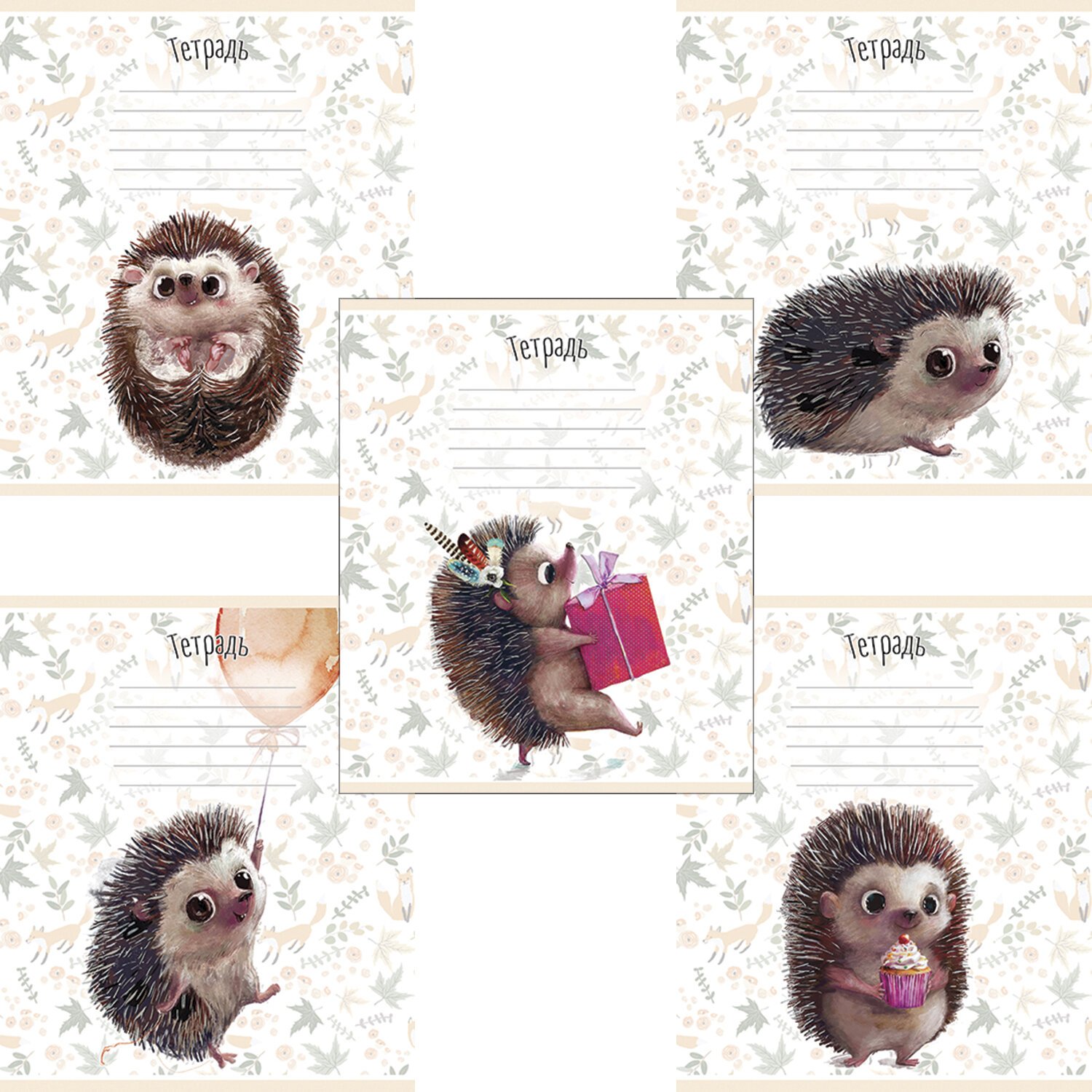 Тетрадь 12 л., ПЗБМ, клетка, конгревное тиснение, "Ёжик" (5 видов), 019852