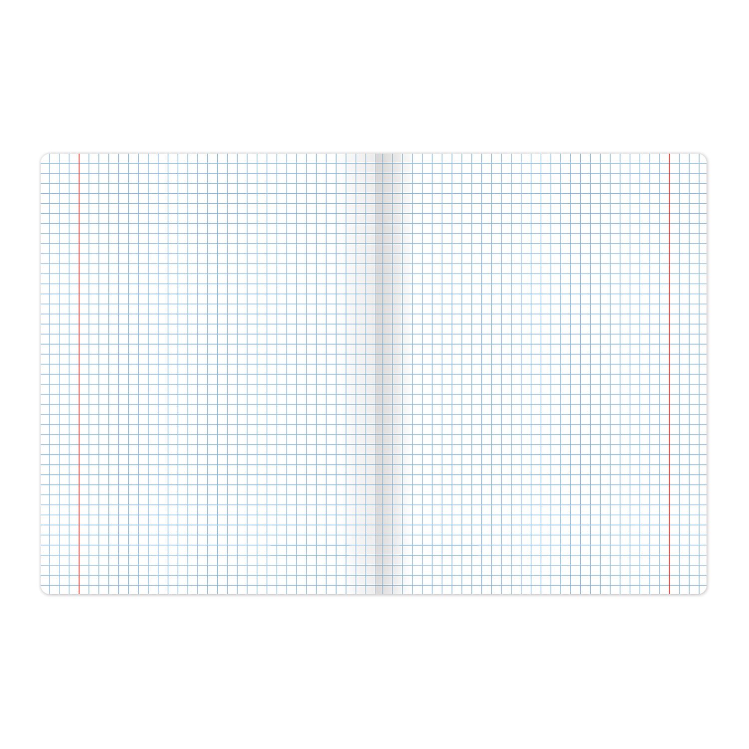 Внутренний блок плотностью 65 г/м2 из офсетной бумаги содержит 12 листов. Линовка - клетка с полями. Обложка изготовлена из импортного мелованного картона. Скрепка надежно скрепляет листы между собой.