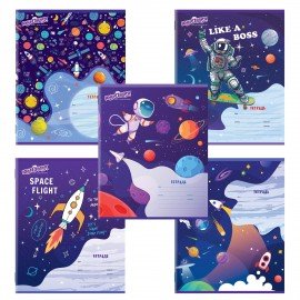 Тетрадь 12 л. HATBER клетка, обложка картон, "Астронавт" (5 видов в спайке), 12Т5В1