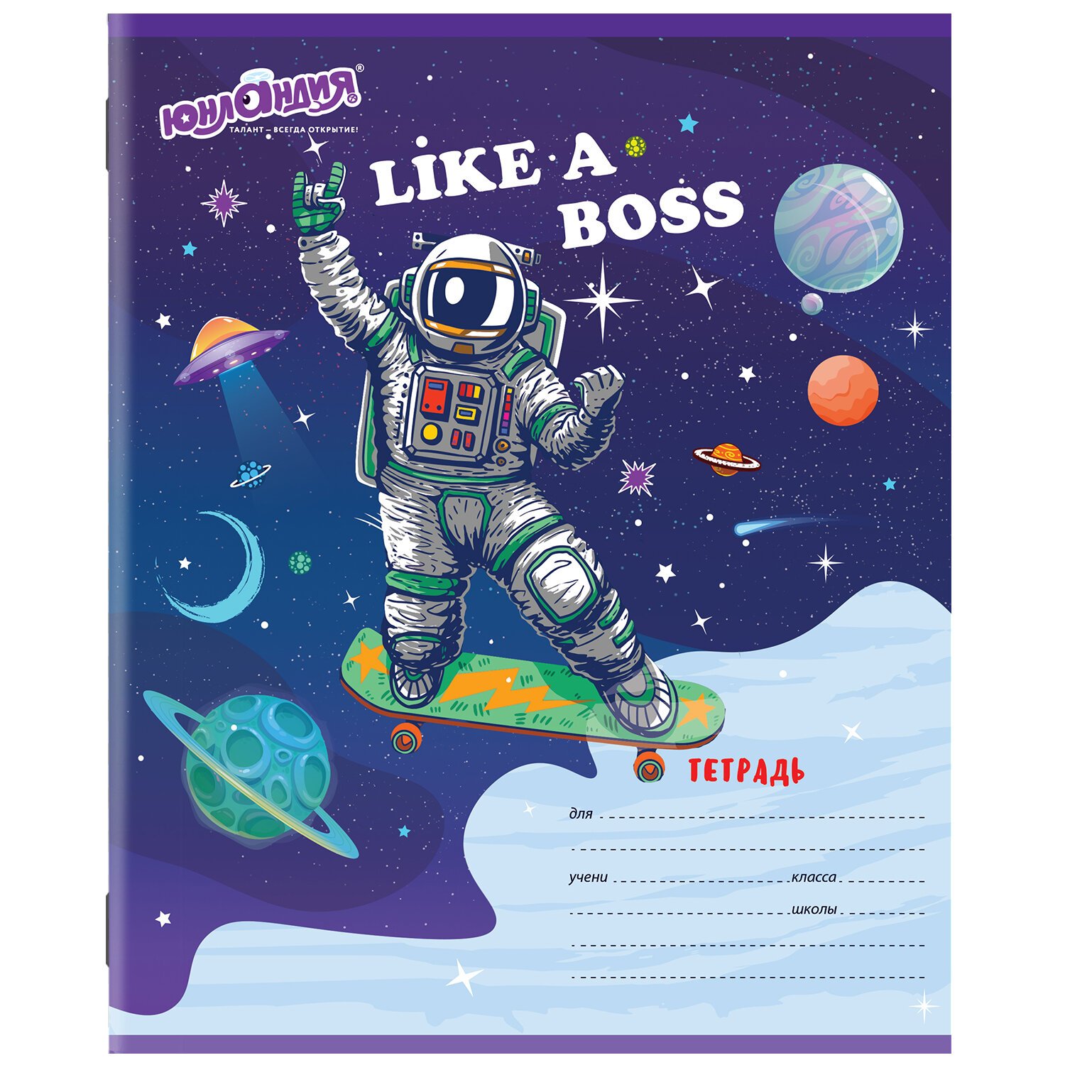 Тетрадь 12 л. ЮНЛАНДИЯ, клетка, обложка картон, "КОСМОС", 106469