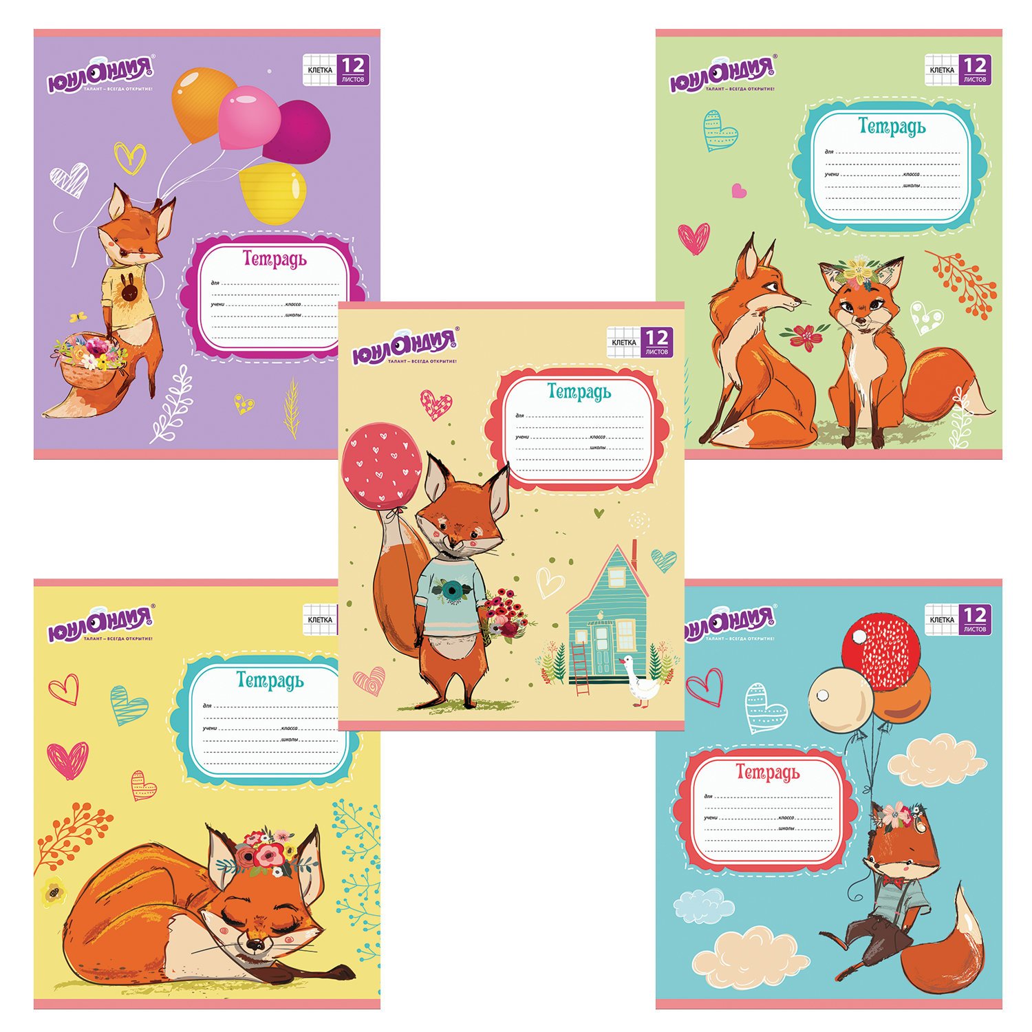 Тетрадь 12 л. ЮНЛАНДИЯ клетка, обложка картон, "ЛИСЯТА", 104913