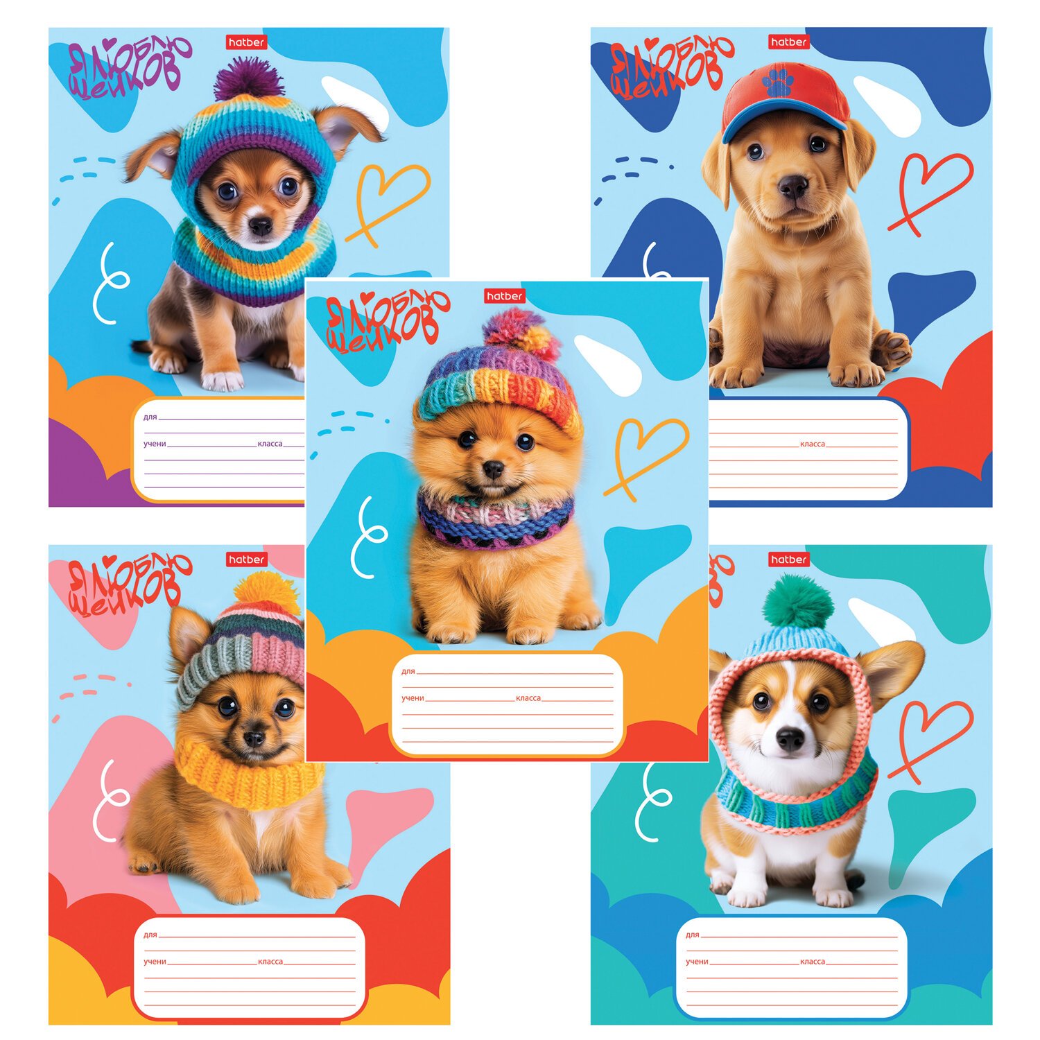 Тетрадь 12л. HATBER клетка, обложка картон, Мы-пёсики! (микс в спайке), 12Т5В1