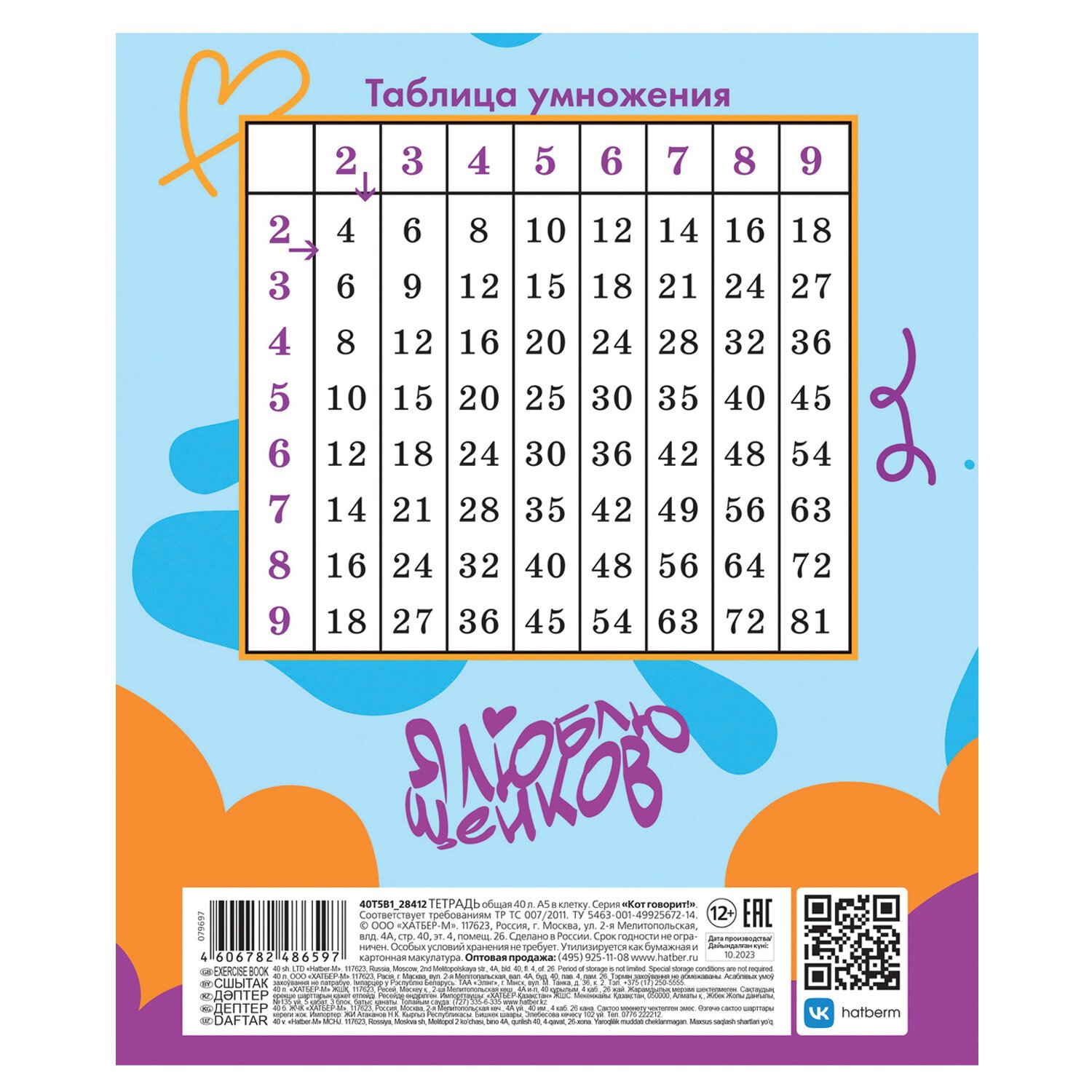 Тетрадь А5 формата 12 листов. Обложка- мелованный картон. Внутренний блок- офсет 60- 65 гр., клетка, красные поля. Скрепление- скоба.