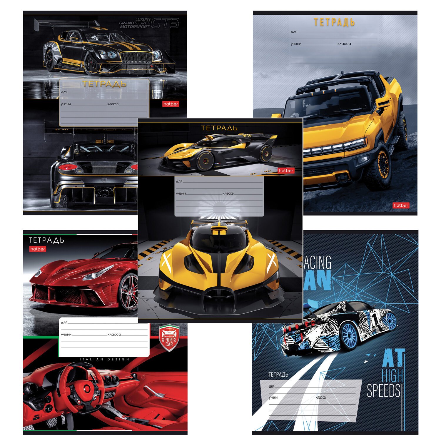 Тетрадь 12л. HATBER клетка, обложка картон, В мире авто (микс в спайке), 12Т5В1