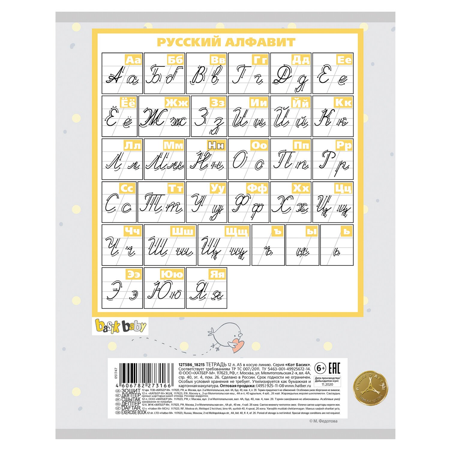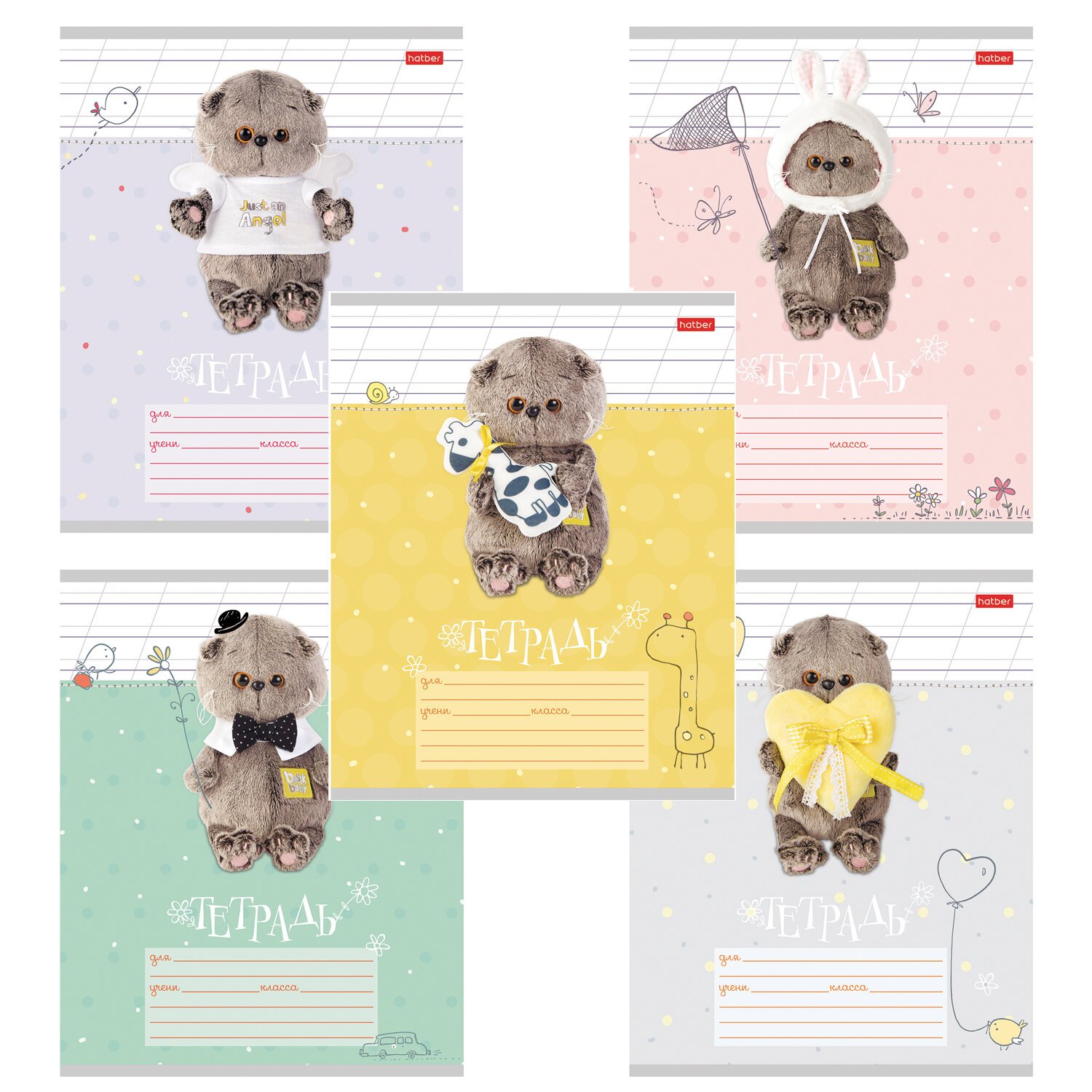 Тетрадь 12л. HATBER косая линия, обложка картон, Кот Басик (микс в спайке), 12Т5В6