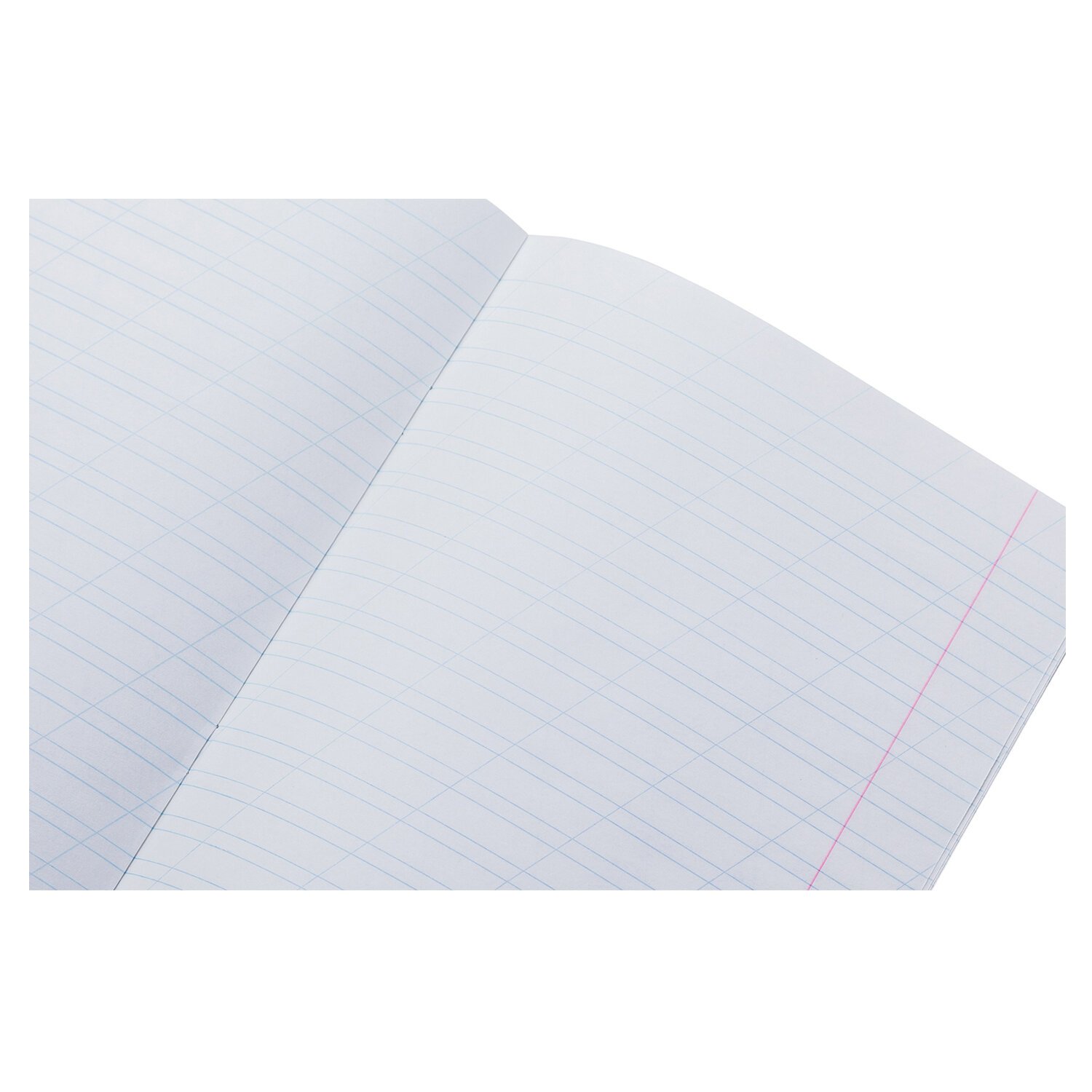 Тетрадь А5 формата 12 листов. Обложка- мелованный картон. Внутренний блок- офсет 60- 65 гр., косая линия, красные поля. Скрепление- скоба.