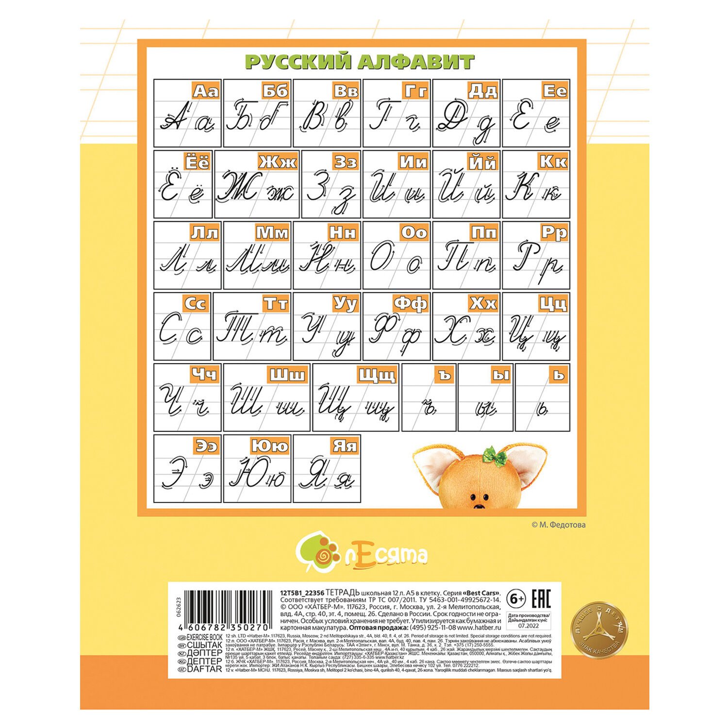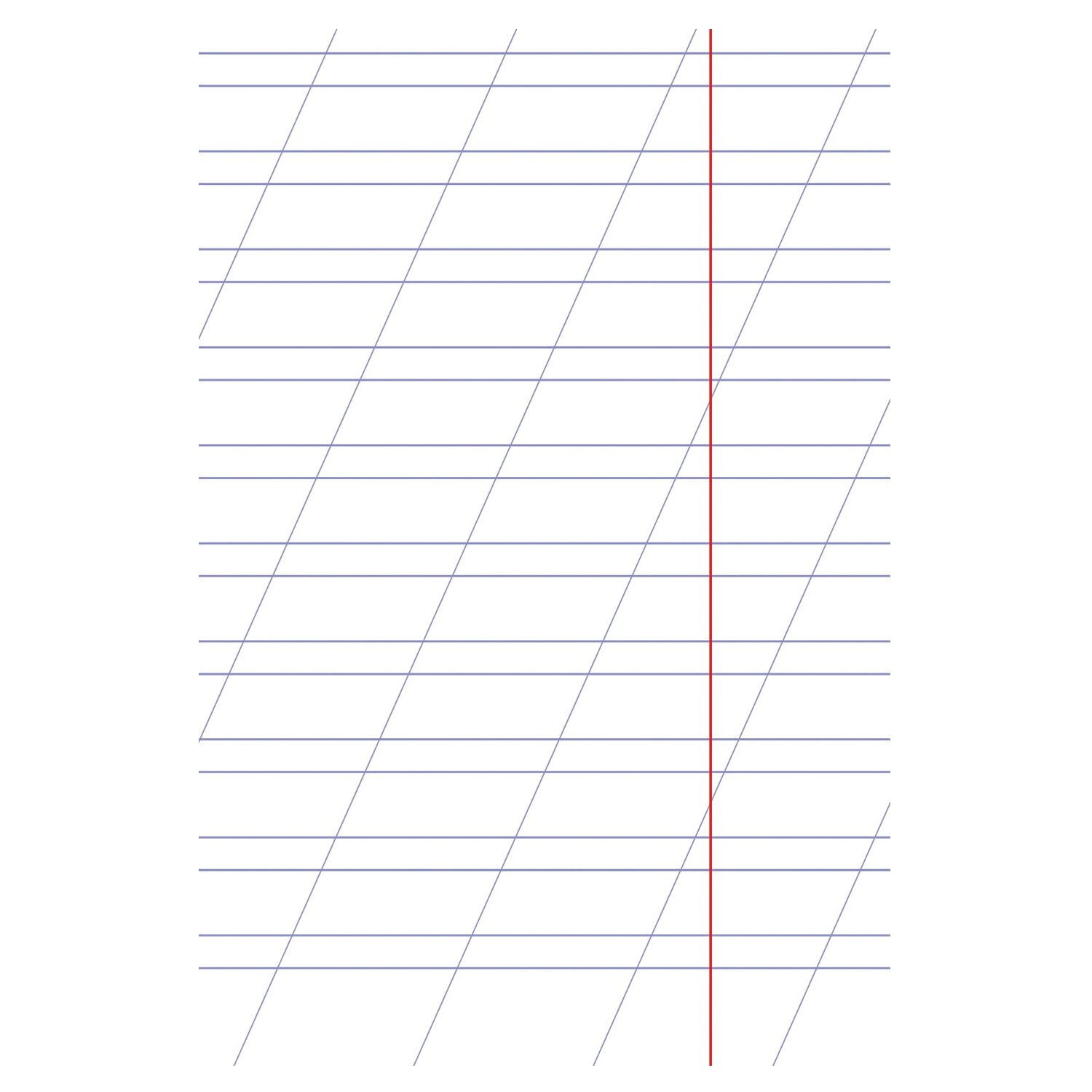 Тетрадь А5 формата 12 листов. Обложка- мелованный картон. Внутренний блок- офсет 60- 65 гр., косая линия, красные поля. Скрепление- скоба.