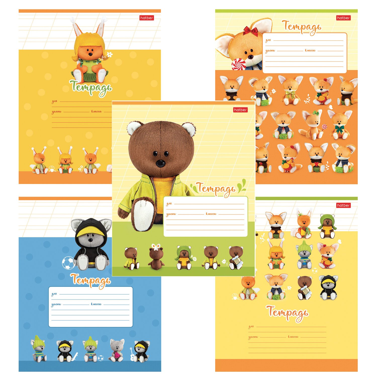 Тетрадь 12 л., HATBER, косая линия, обложка картон, "Мультяшки" (5 видов в спайке), 12Т5В6