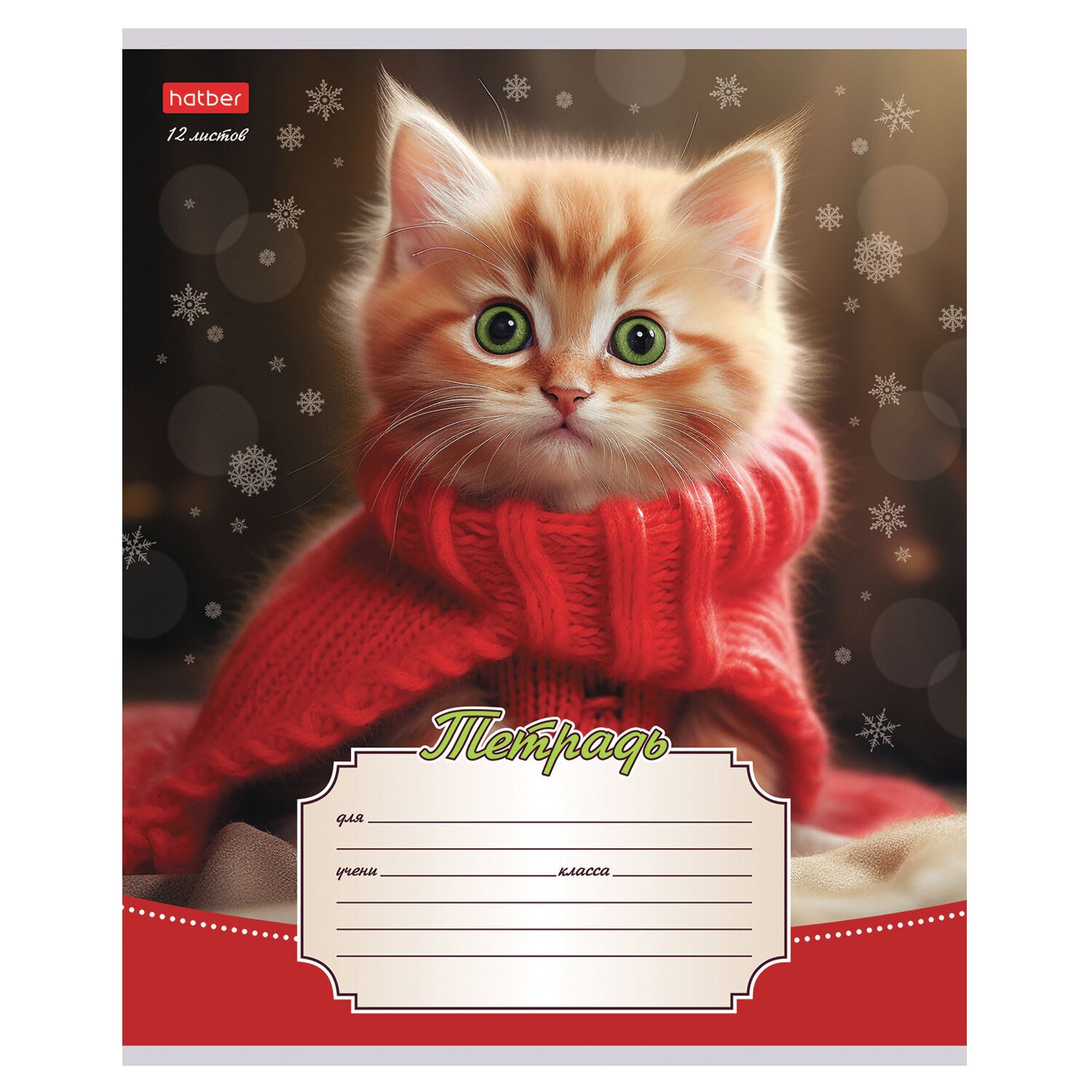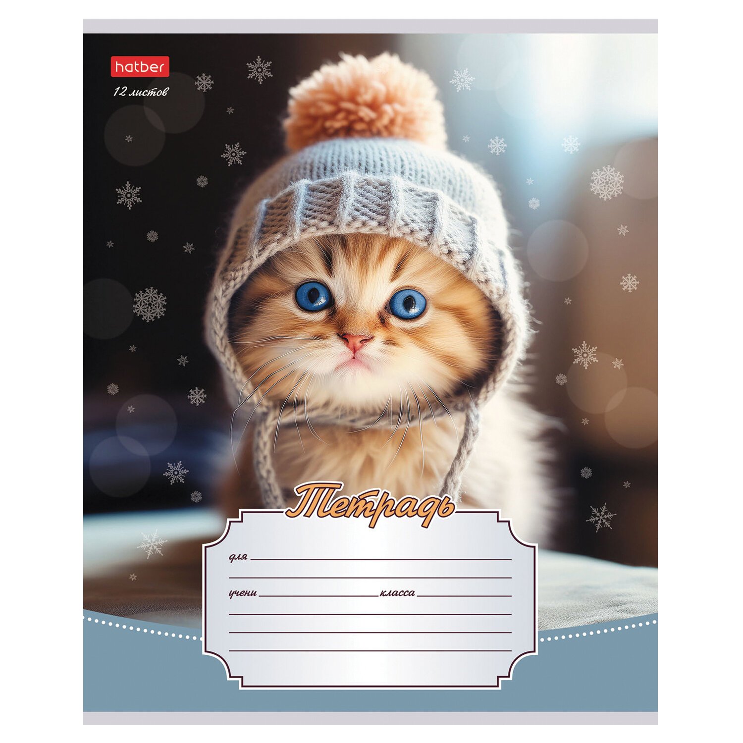 Тетрадь 12л. HATBER линия, обложка картон, Уютные котики (микс в спайке), 12Т5В2