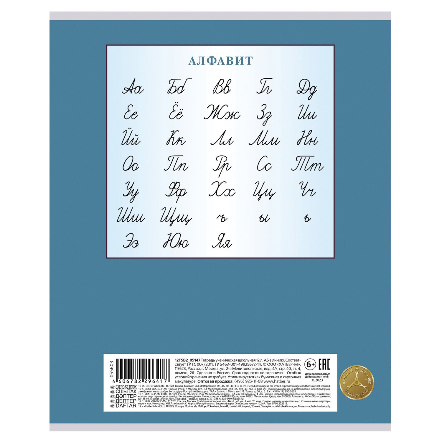 Тетрадь 12 л., HATBER HD, линия, обложка тонированный офсет, блок 80 г/м2, "ПУШКИН", 12Т5A2_07641, T099469