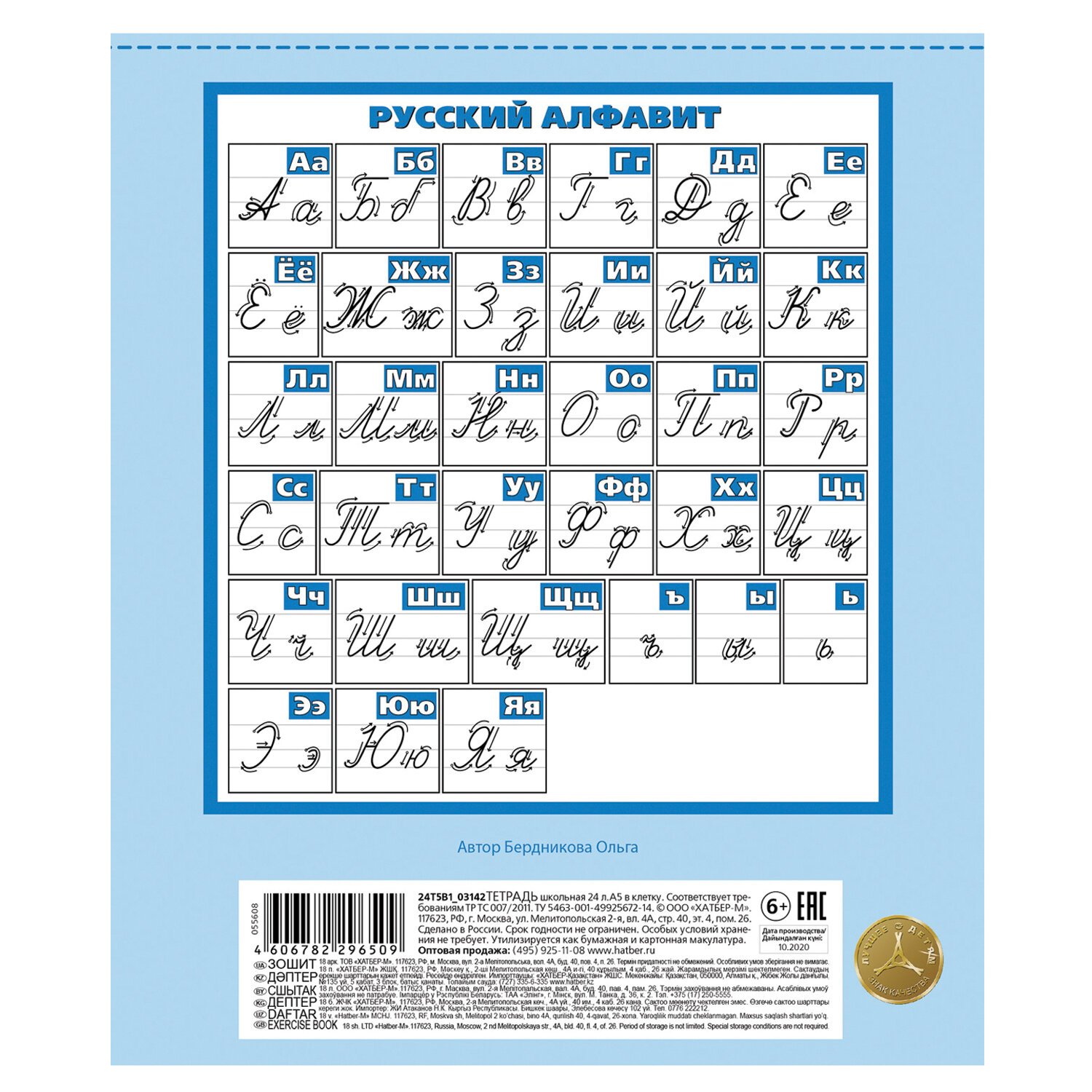 Тетрадь А5 формата 12 листов. Обложка- мелованный картон. Внутренний блок- офсет 60- 65 гр., узкая линия, красные поля. Скрепление- скоба.