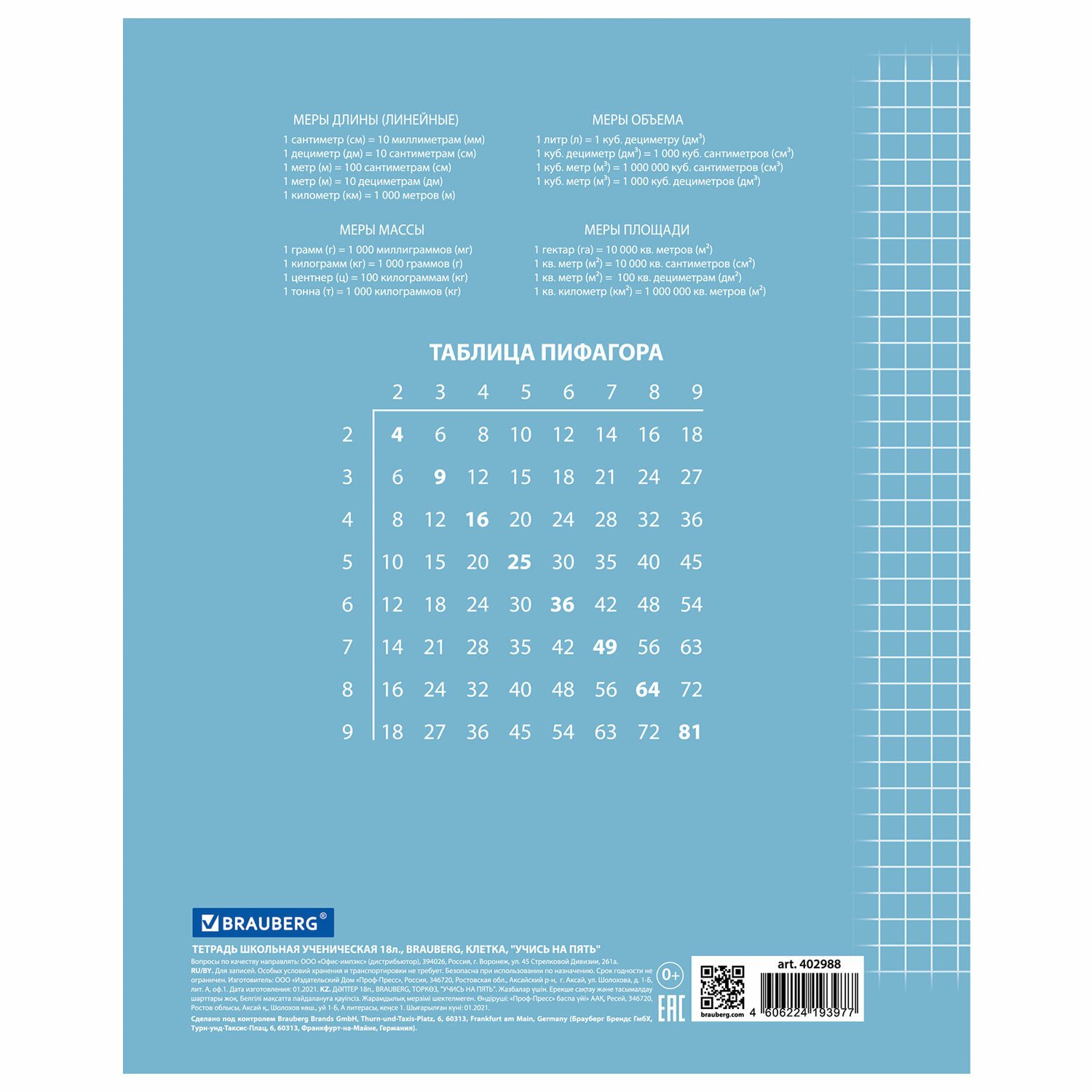Тетрадь 18 л. BRAUBERG ЭКО "5-КА", клетка, обложка плотная мелованная бумага, СИНЯЯ, 402988