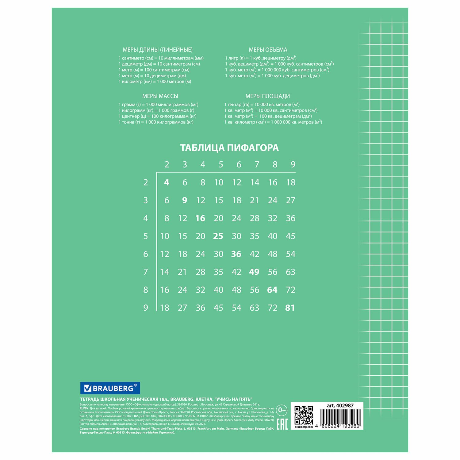 Тетрадь 18 л. BRAUBERG ЭКО "5-КА", клетка, обложка плотная мелованная бумага, ЗЕЛЕНАЯ, 402987